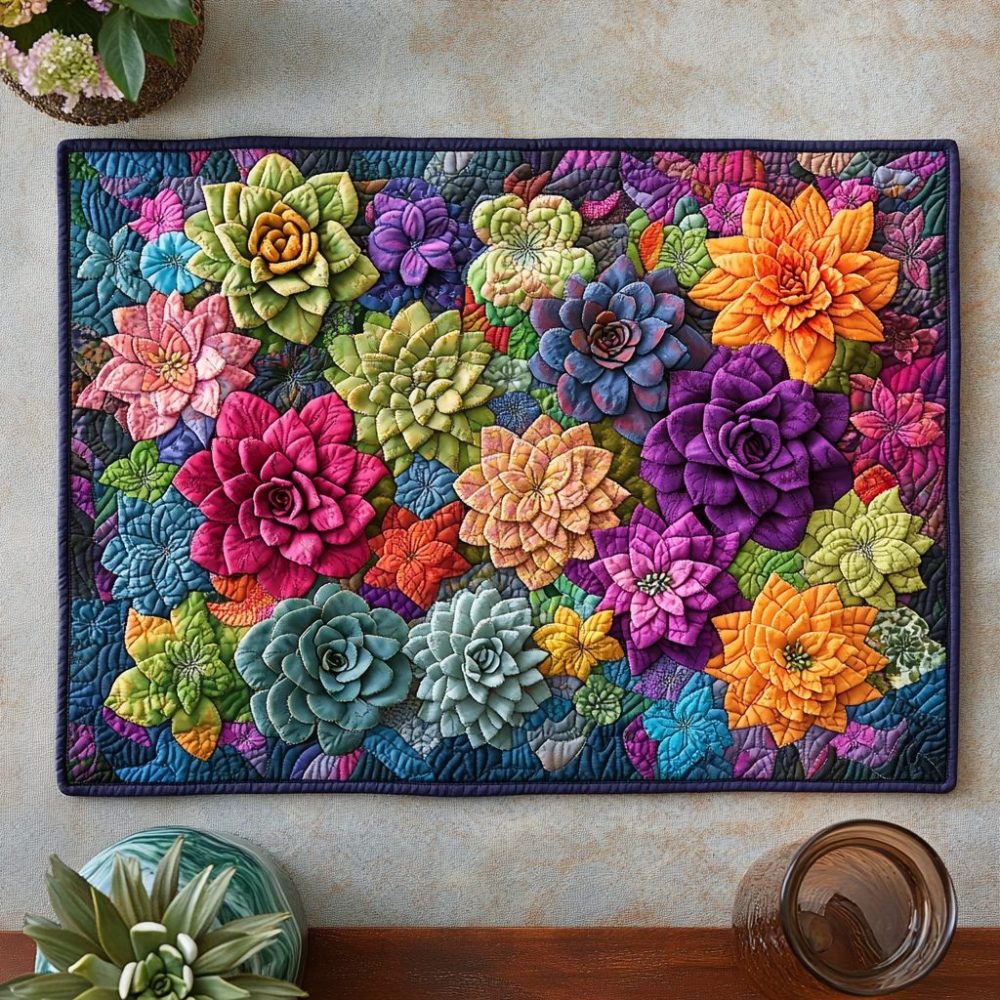 Succulent Garden Quilted Placemats – Greenery Floral Table Mats, Cotton Blend Dining Protector, Machine Wash Ready