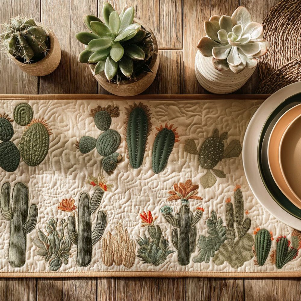 Succulent Story Quilted Table Runner