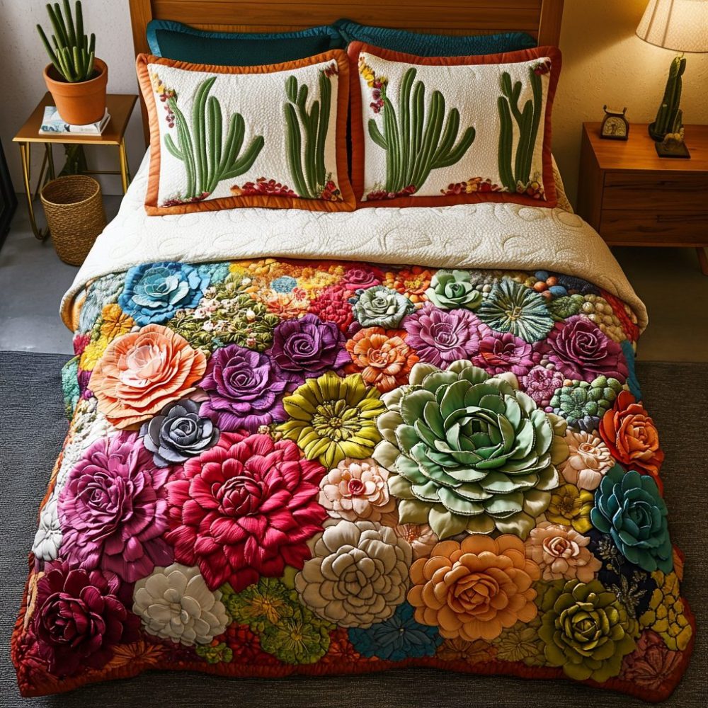 Succulent Symphony 3-Piece Quilted Bedding Set