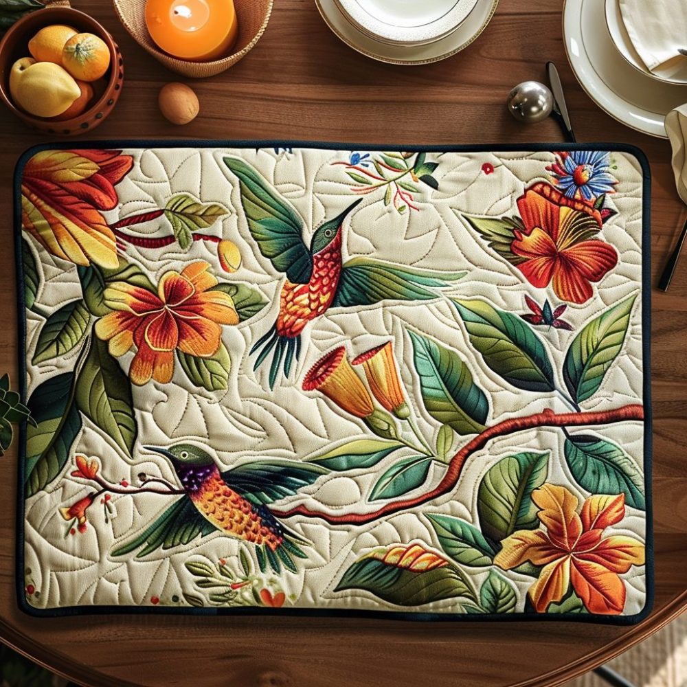 hummingbird placemat,tropical placemat,summer table decor,quilted bird placemat,insulated placemat,machine washable