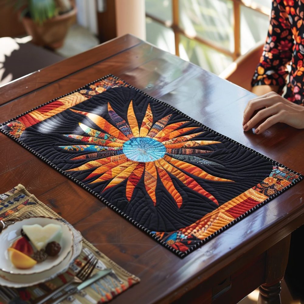 sun feather placemat, quilted table placemat, boho kitchen decor, cotton placemat, machine washable placemat, heat resistant placemat