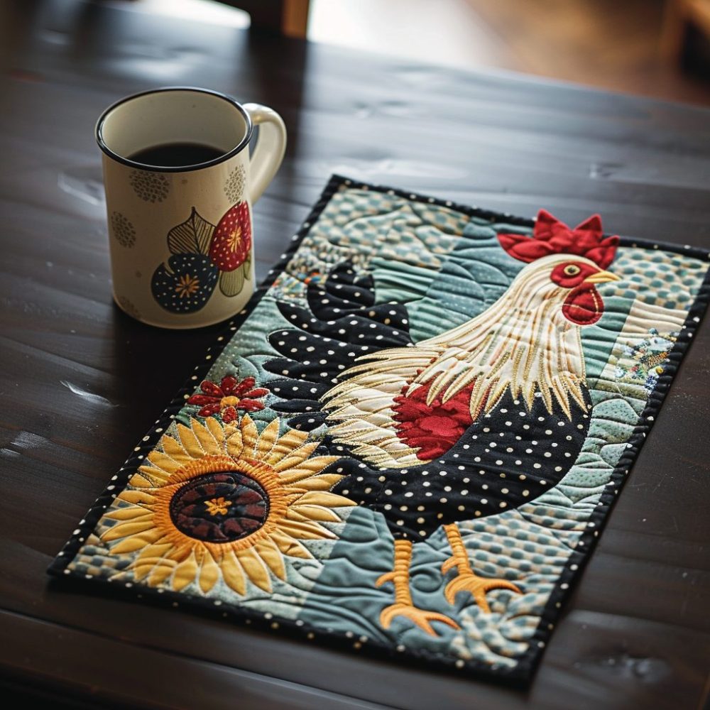 Sunflower & Chicken Quilted Table Placemat — Country Farmhouse Cotton Dining Mat, Protective Padding, Easy-Care Accent