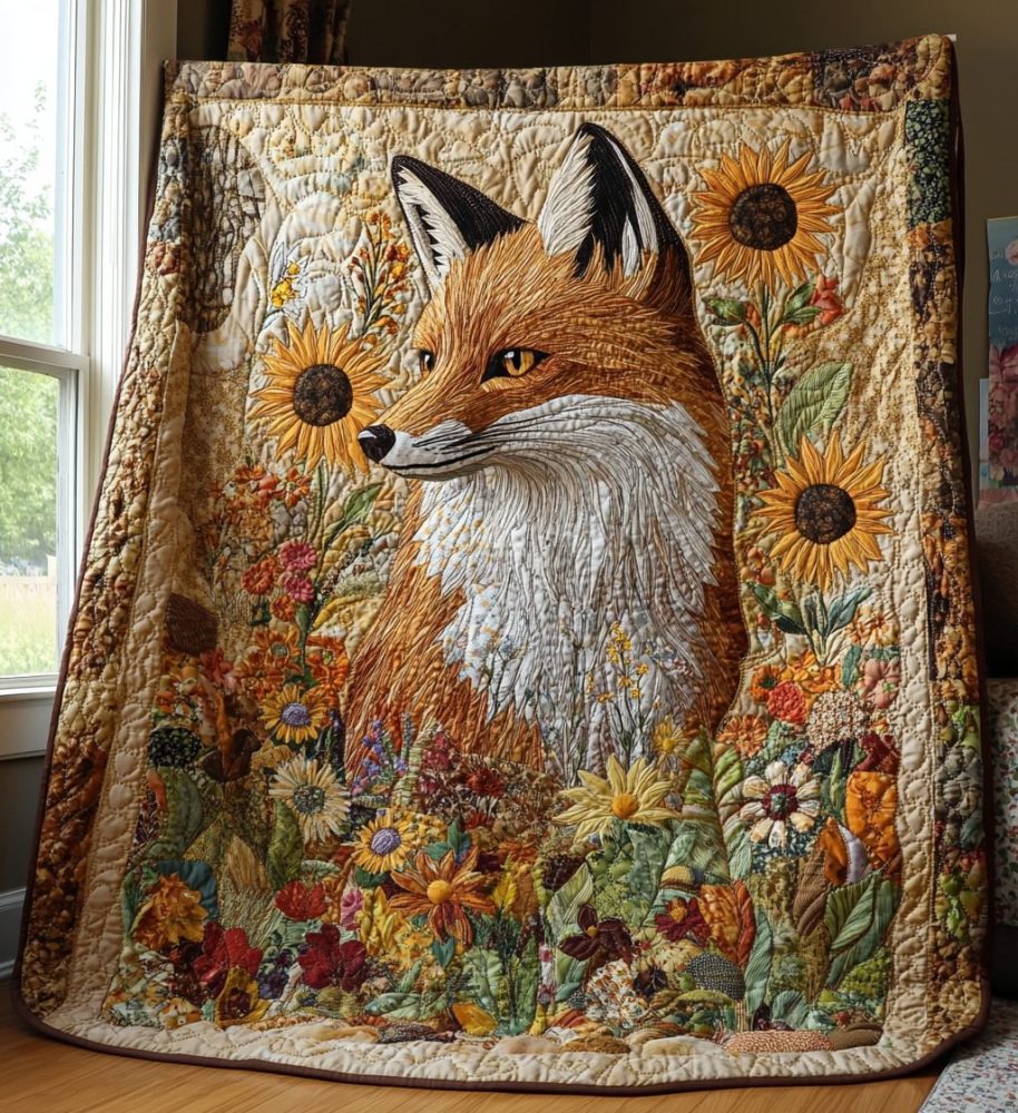 Sunflower Fox Quilted Blanket