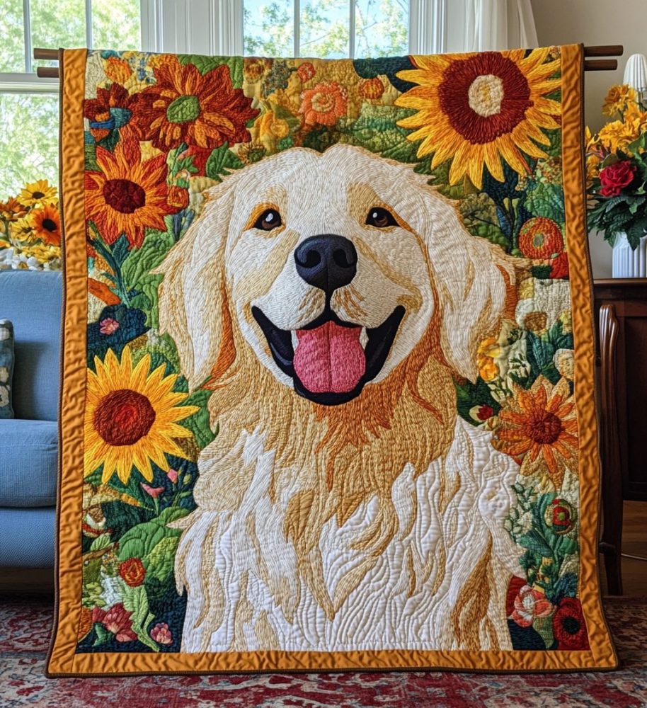 Sunflower Golden Retriever Quilted Blanket
