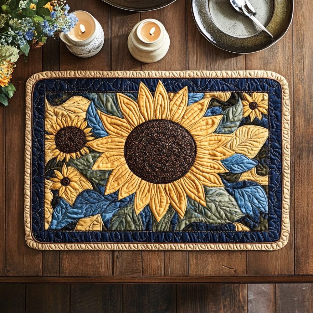 Add sunny charm to your table with the Sunflower quilted placemat featuring bold, cheerful blooms and textured quilting. The thick cotton-blend construction protects against heat and spills while offering soft, comfortable placement for dinnerware. Easy to care for and machine-washable, this placemat suits sunny breakfasts, summer dinners, and year-round farmhouse-style décor. Pair with rustic centerpieces for a warm, inviting table.