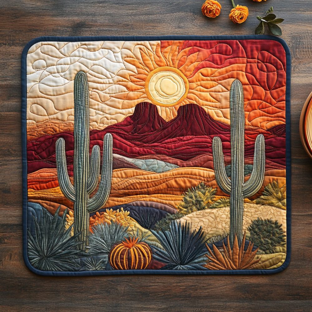 Sunlit Cactus Quilted Placemat — Desert Botanical Table Accent, Durable Cotton, Heat-Friendly, Stylish Southwestern Dining Accessory
