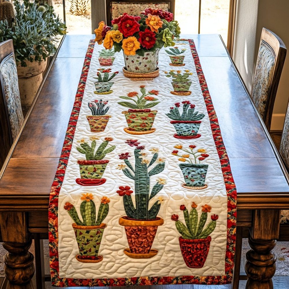 Sunny Cactus Quilted Table Runner