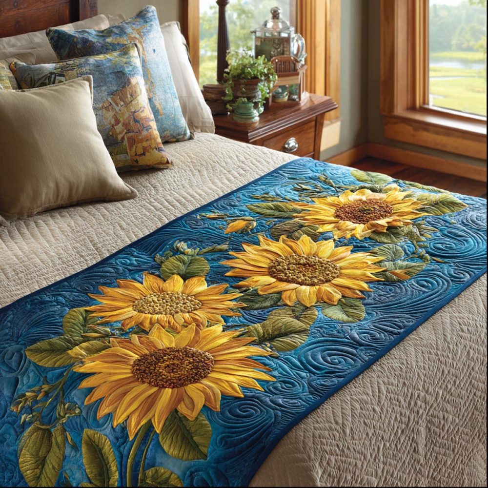 Sunny Meadow Quilted Bed Runner — Fresh Meadow Floral Bed Scarf For Queen & King, Lightweight Decorative Accent & Machine Washable