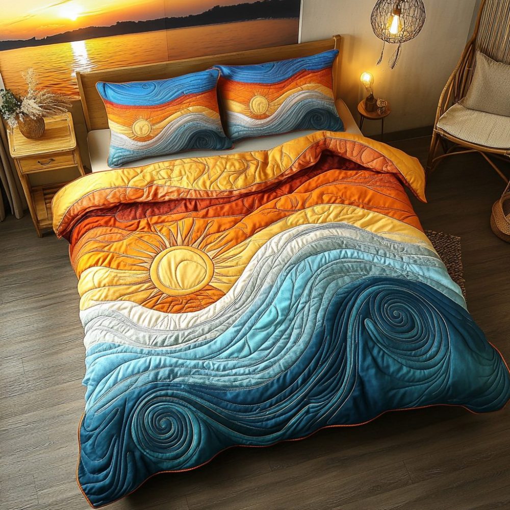 Sunrise And Waves 3-Piece Quilted Bedding Set