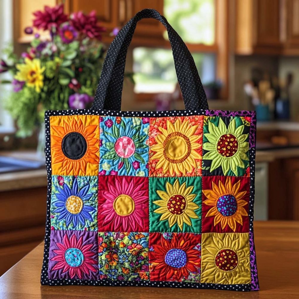 Sunrise Sunflower Kiss Quilted Tote Bag