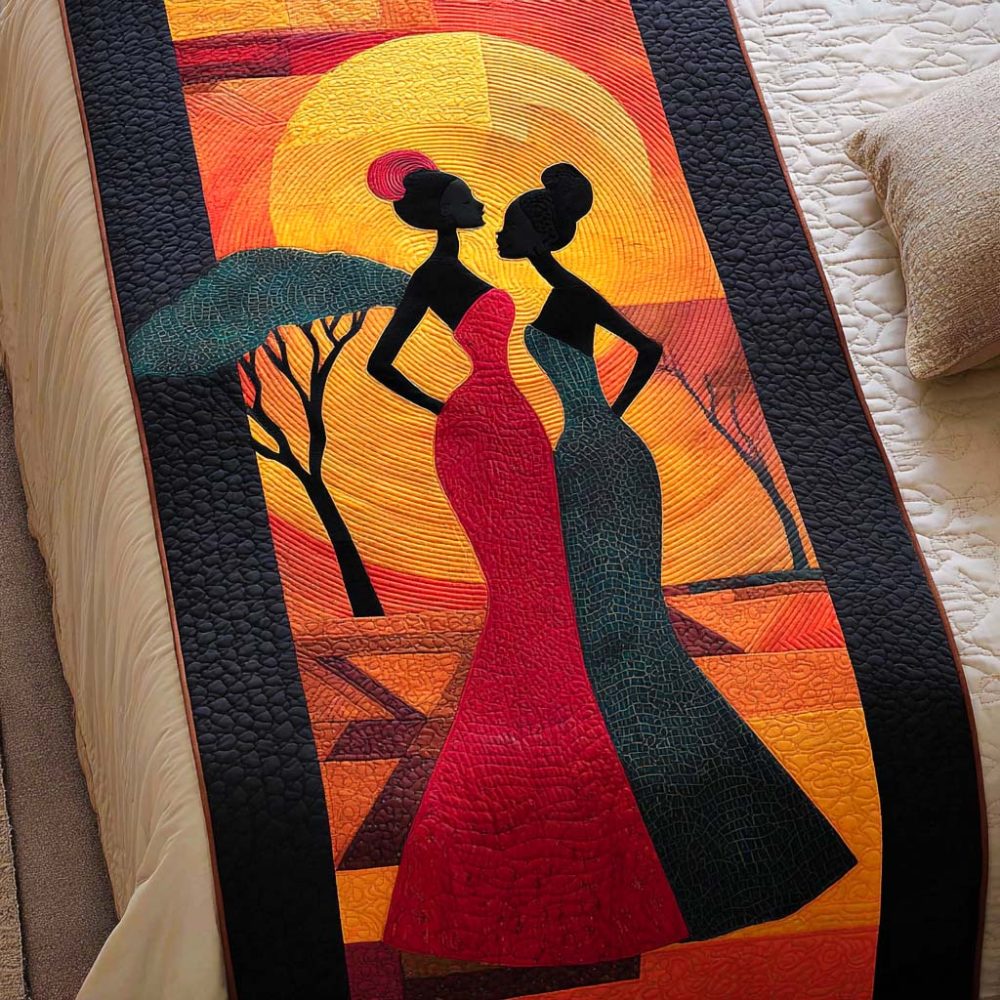 sunset bed runner,gradient bed runner,quilted decorative throw,evening palette bedding,serene bedroom decor,warm tones bed accent,cotton quilt