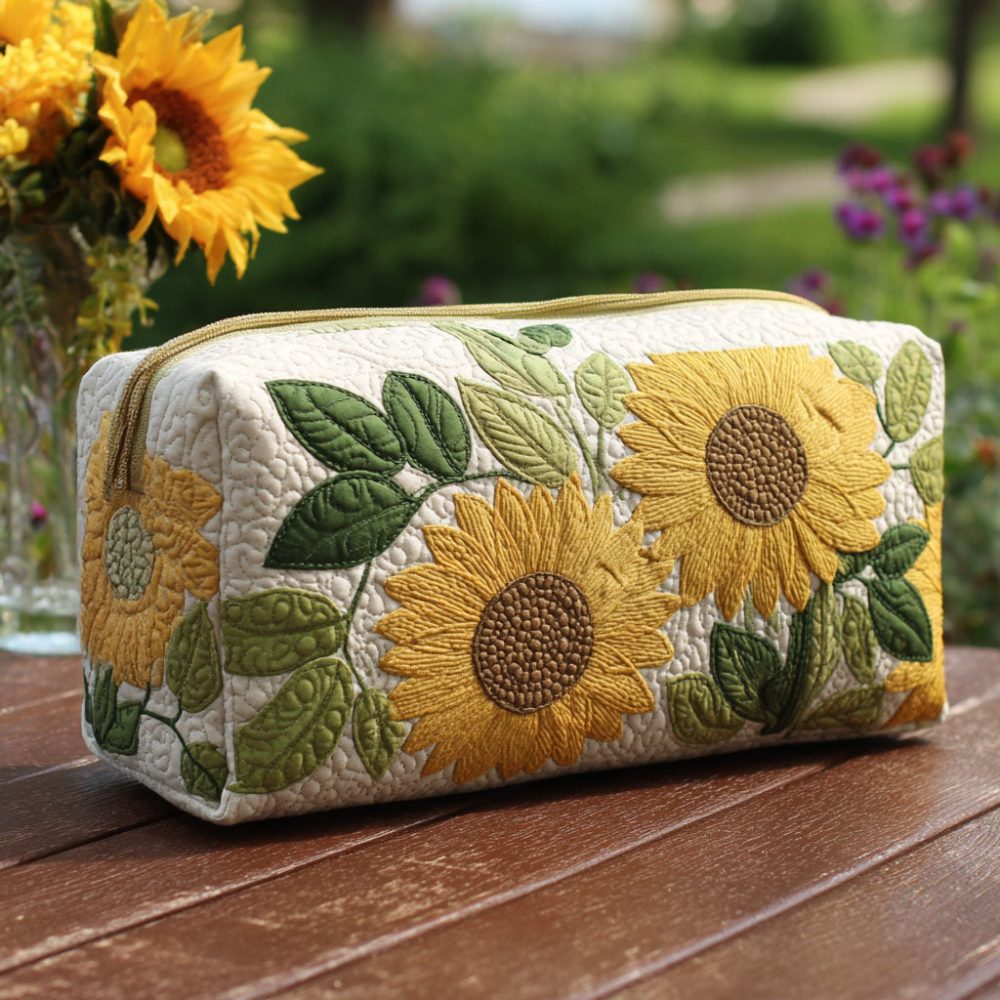 Sunshine Petals Quilted Makeup Bag