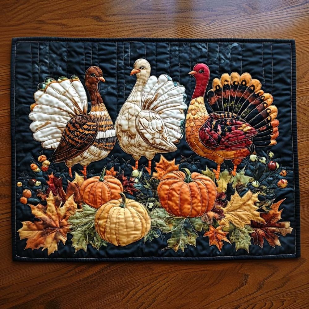 Thanksgiving Charm Harvest Quilted Table Placemat – Autumn Leaves & Harvest Motif, Durable Cotton Blend, Stain-Resistant Holiday Decor