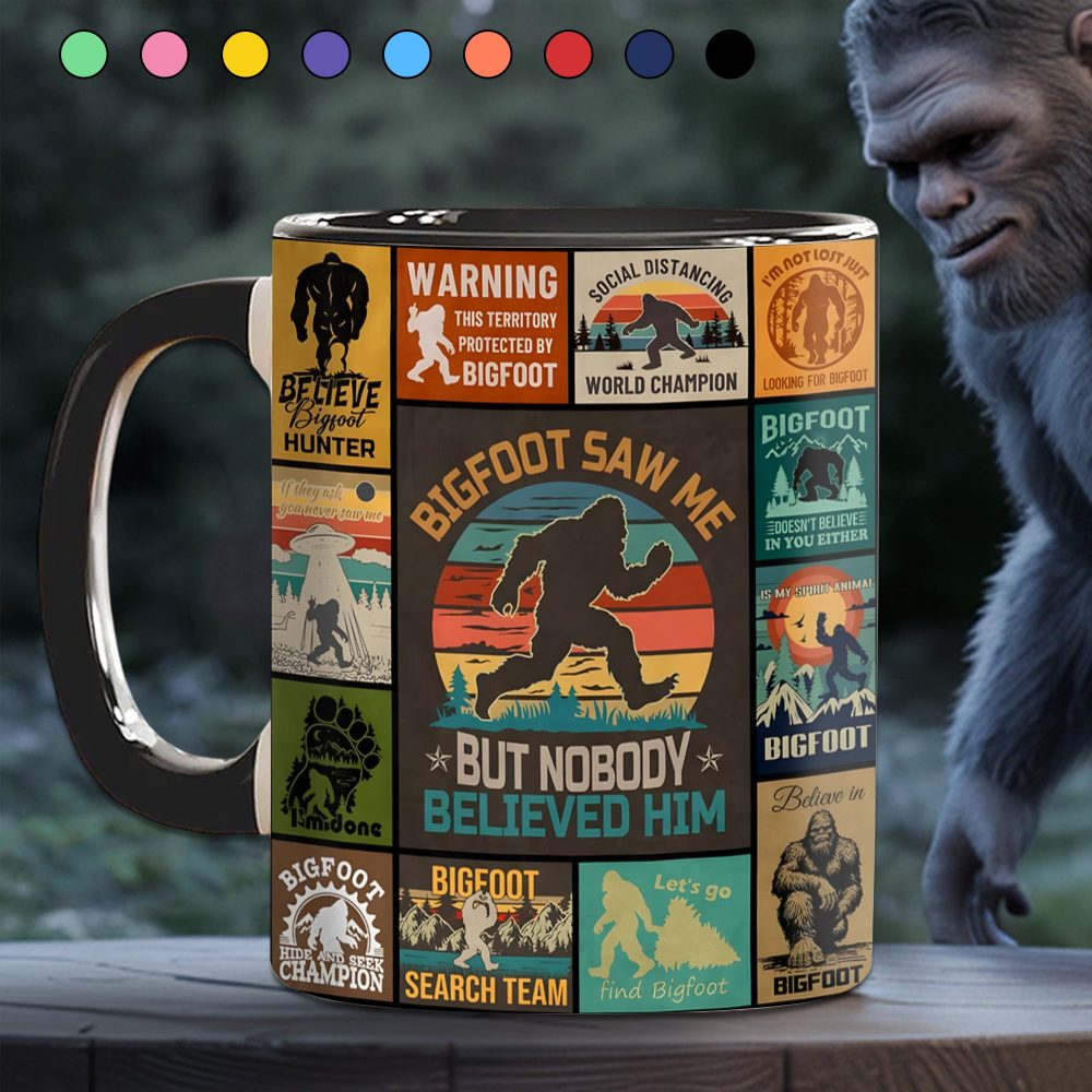 - High quality ceramic mug with two-tone rim, interior, & handle