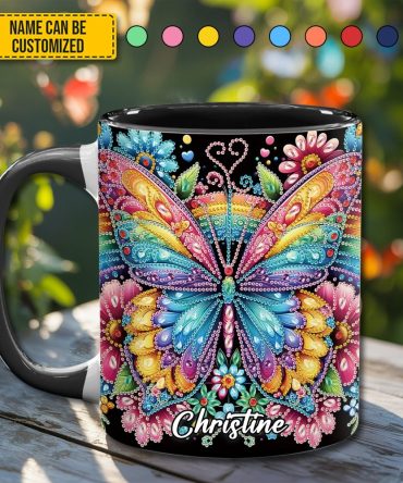 - High quality ceramic mug with two-tone rim, interior, & handle