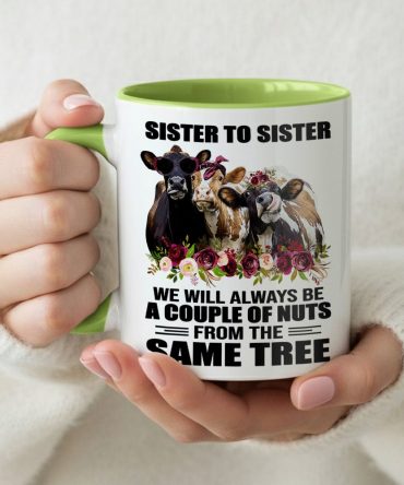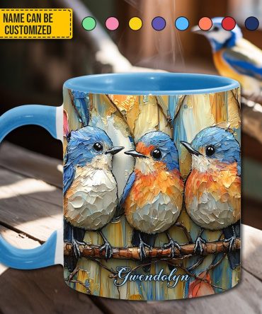- High quality ceramic mug with two-tone rim, interior, & handle