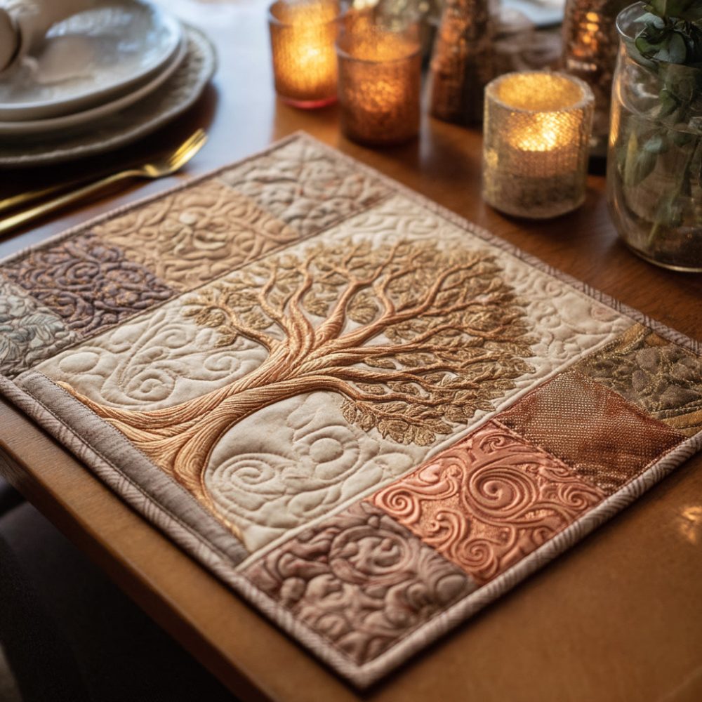 quilted placemat, tree placemat, holiday table decor, rustic table accent, dining mat, quilted table protector, seasonal placemat, farmhouse decor