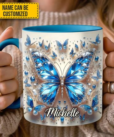 - High quality ceramic mug with two-tone rim, interior, & handle