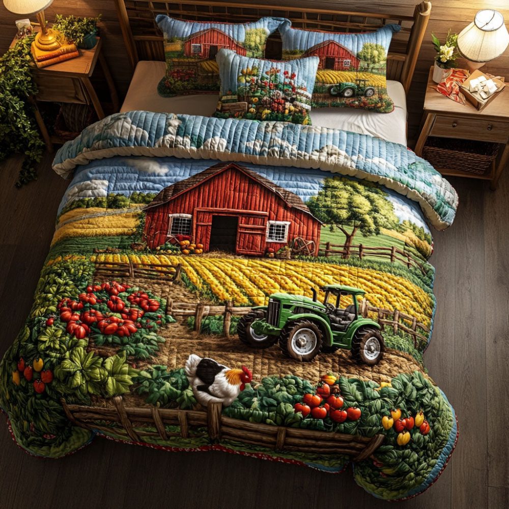 Tractor In Field 3-Piece Quilted Bedding Set