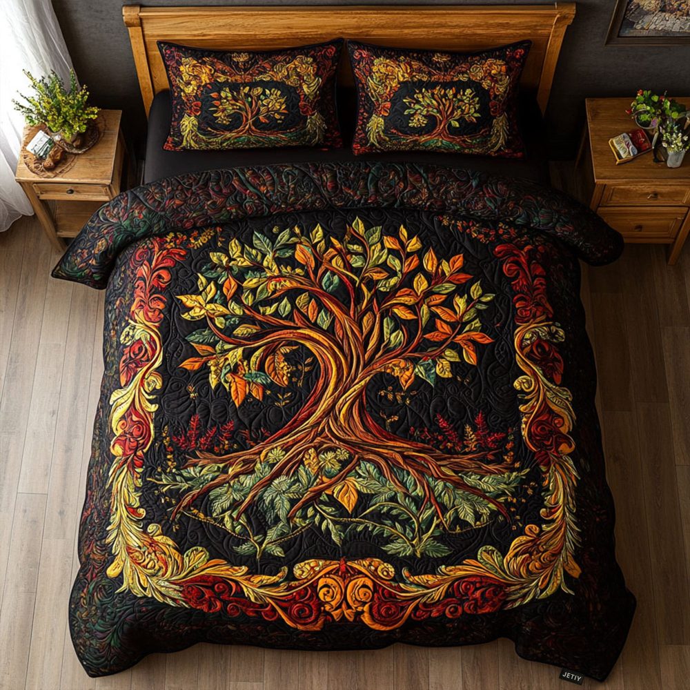 Tree Of Triumph 3-Piece Quilted Bedding Set