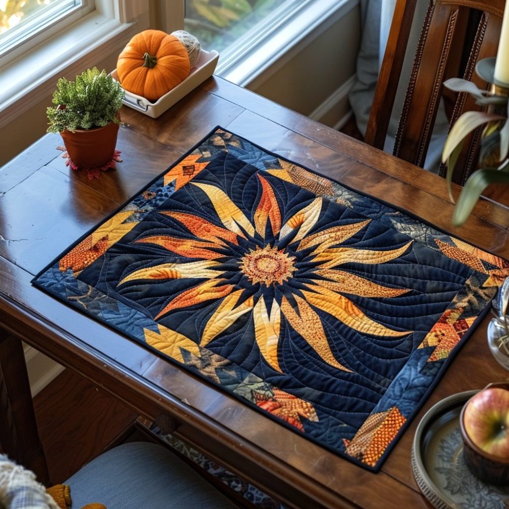 tribal placemat, sunburst placemat, quilted table mat, boho table decor, ethnic placemat, cotton placemat, machine washable, heat-resistant mat