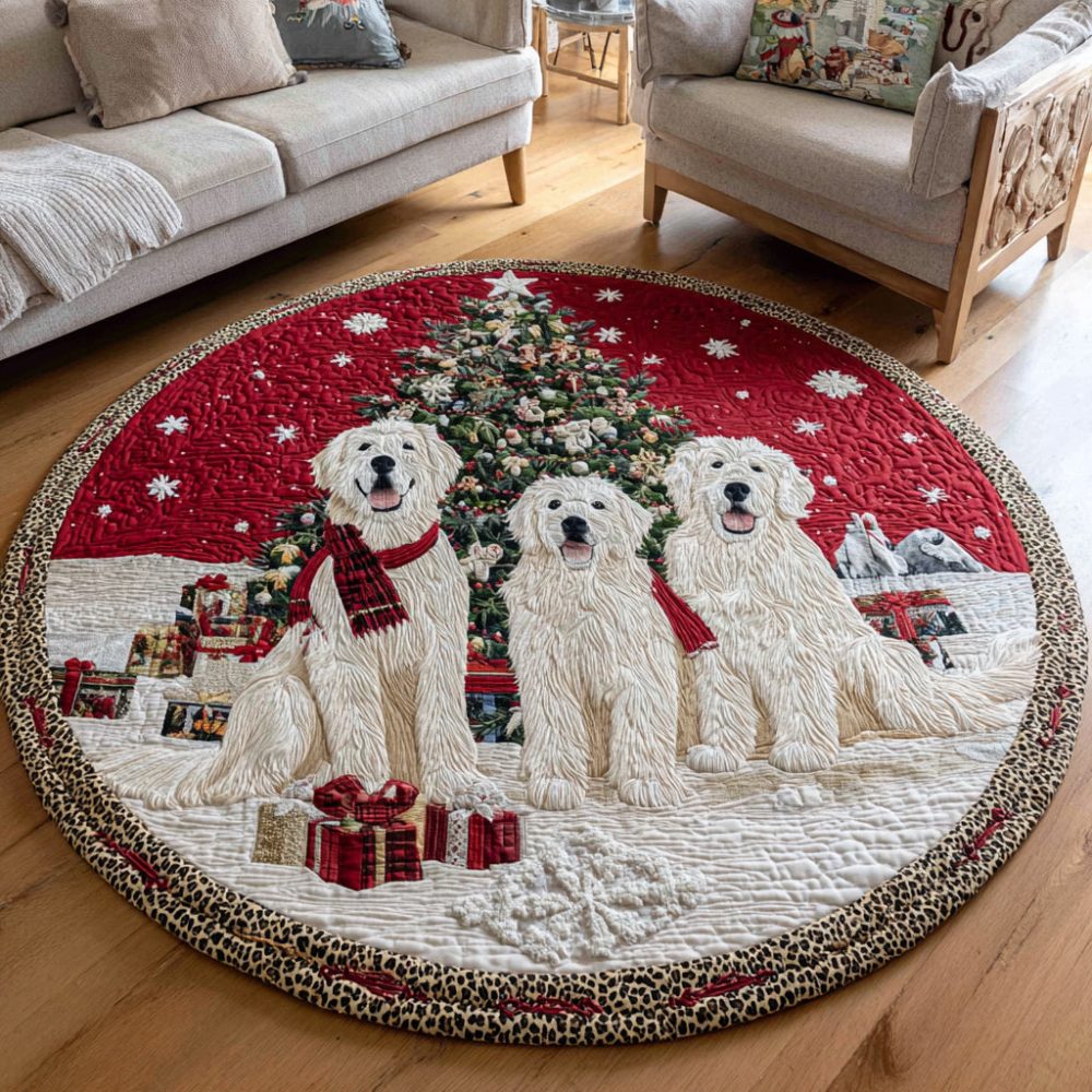 Trio Great Pyrenees Quilted Round Mat