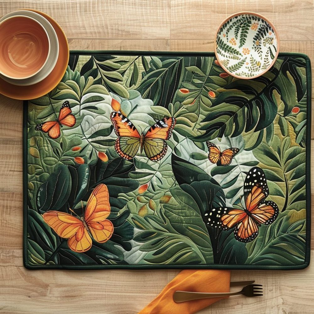 Tropical Butterflies Quilted Placemat – Lush Botanical & Butterfly Print, Breathable Cotton, Machine Washable Summer Dining Accent
