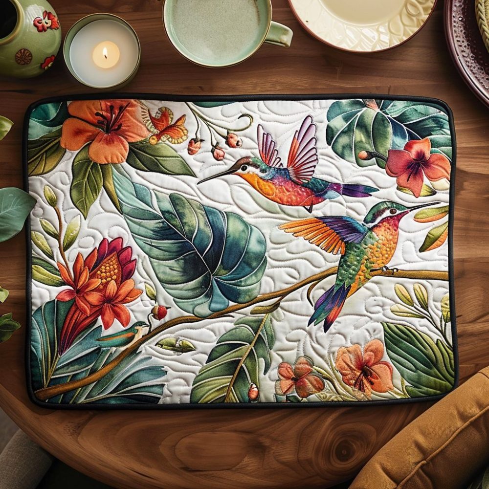 hummingbird placemat,tropical placemat,floral table mat,quilted cotton placemat,tropical dining decor,bright placemat,machine washable,coastal table accent