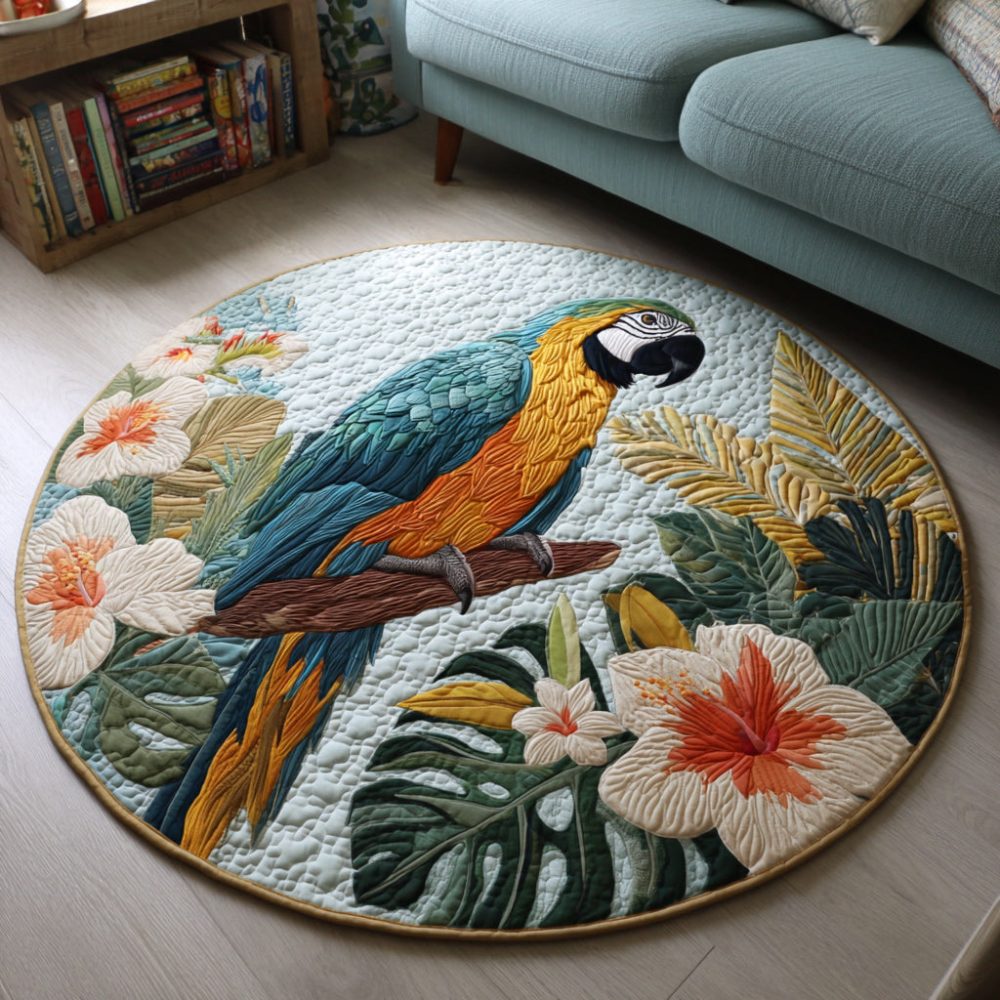 Tropical Parrot Quilted Round Mat
