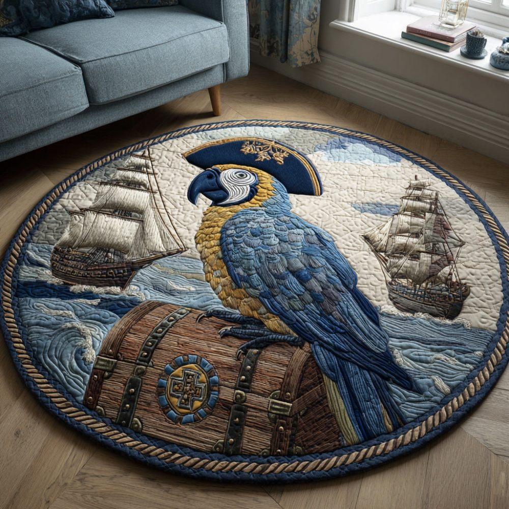 Tropical Pirate Parrot Quilted Round Mat