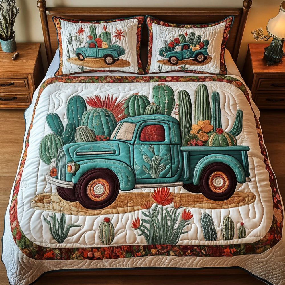 Truck With Cactus 3-Piece Quilted Bedding Set
