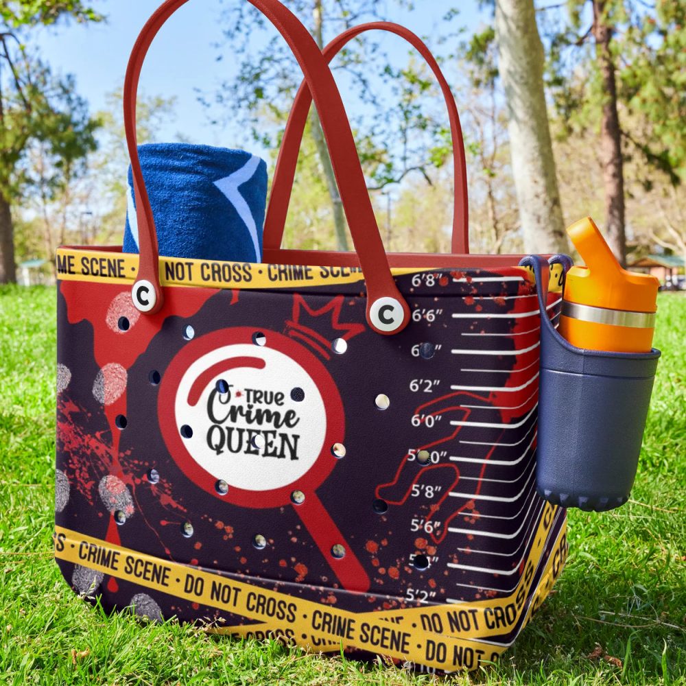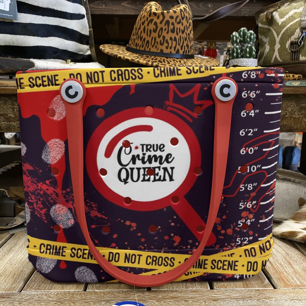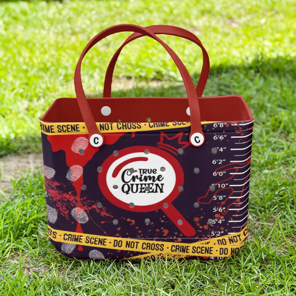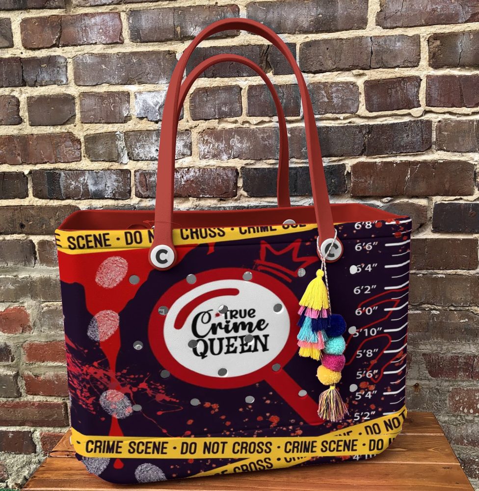 Be the first to review “True Crime Queen Tote Bag – Stylish Detective Theme With Red Handles”