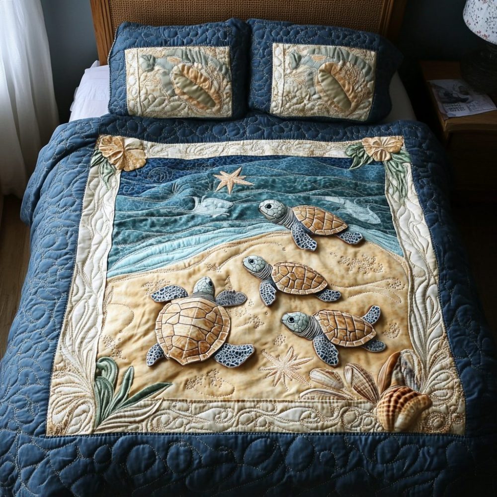 Turtles In Paradise 3-Piece Quilted Bedding Set