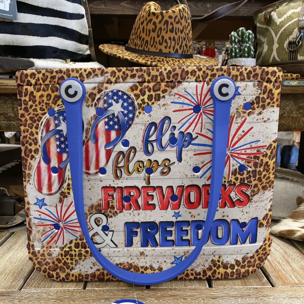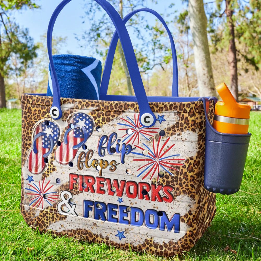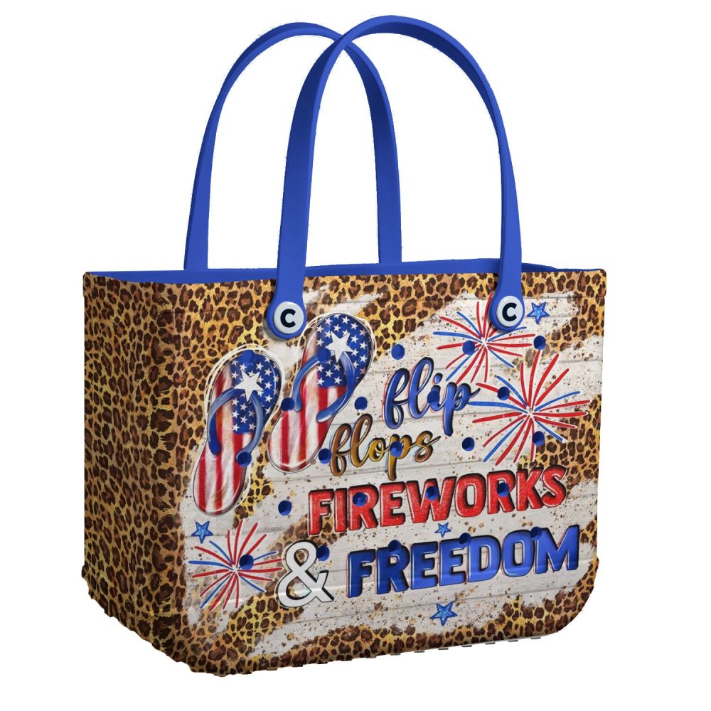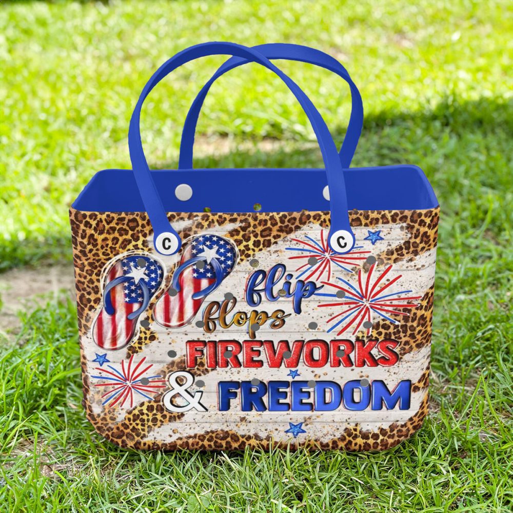 Be the first to review “Usa Patriotic Tote Bag – Flip Flops, Fireworks & Freedom Design – Perfect For Summer!”