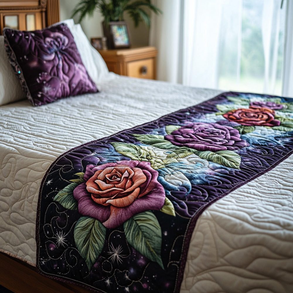 Velvet Rose Plush Quilted Bed Scarf — Luxurious Rose Pattern Bed Runner With Velvet Accents For Romantic Bedroom Styling