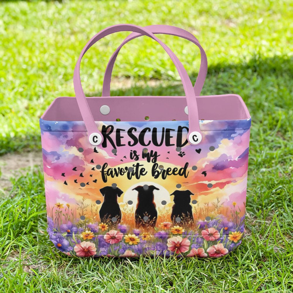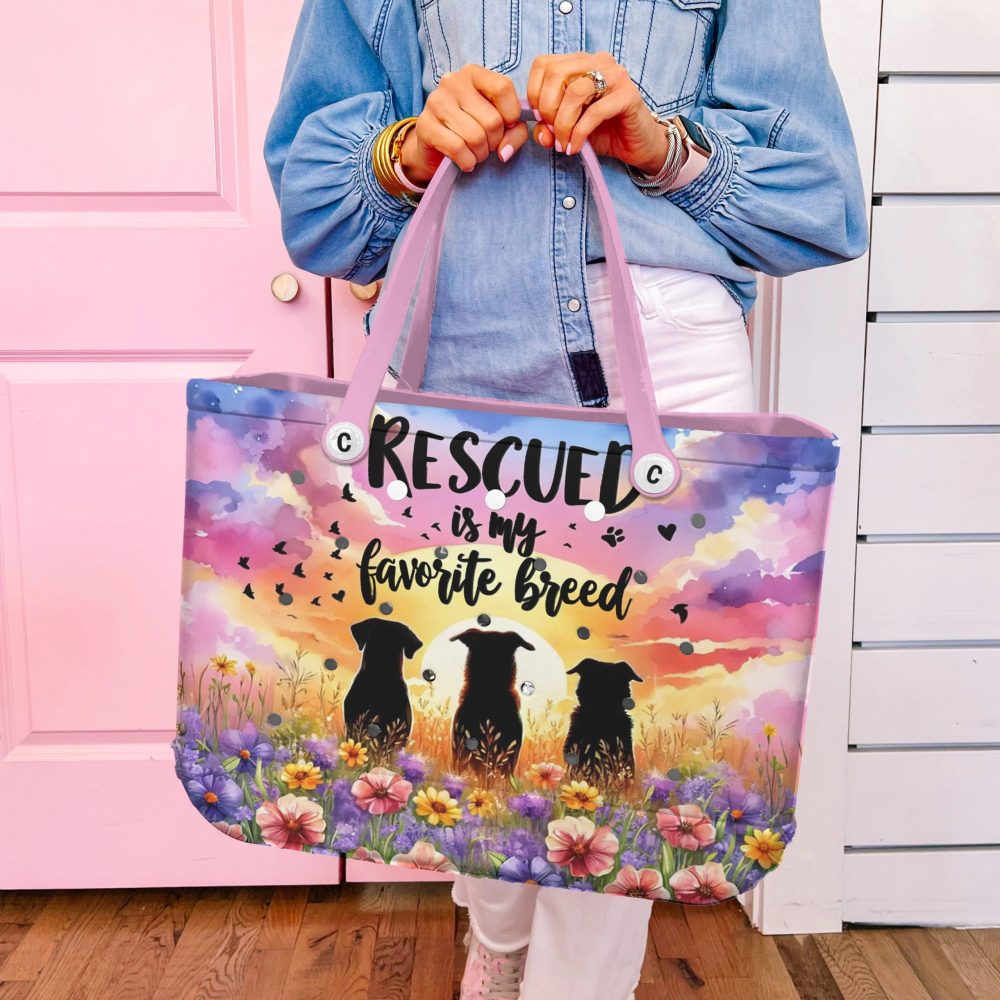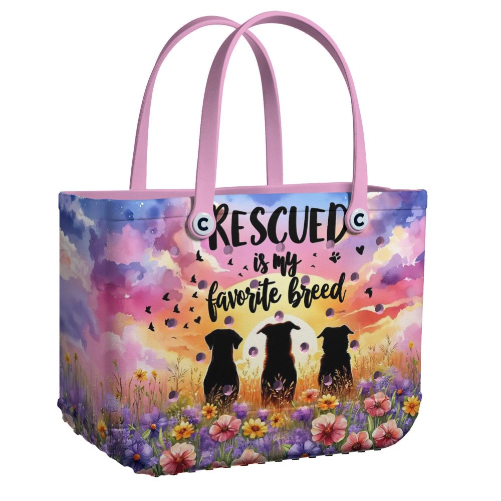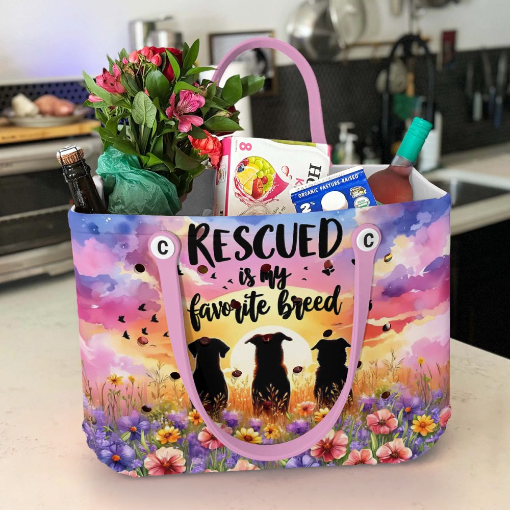 Be the first to review “Vibrant Dog Lover Tote Bag – ‘Rescued Is My Favorite Breed’ Design, Perfect For Pet Enthusiasts”