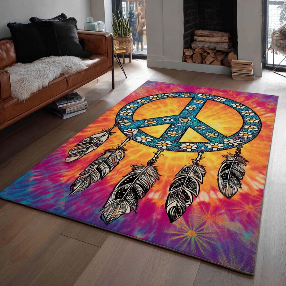 Vibrant Dreamcatcher Peace Tie-Dye Area Rug – Colorful Boho Accent Rug For Living Room, Bedroom & Dorm, Soft Low-Pile, Fade-Resistant