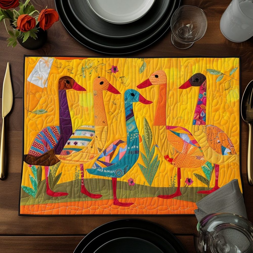 duck landscape placemat,quilted duck placemat,colorful waterfowl placemat,padded cotton placemat,stain resistant,heat resistant,machine washable table mat