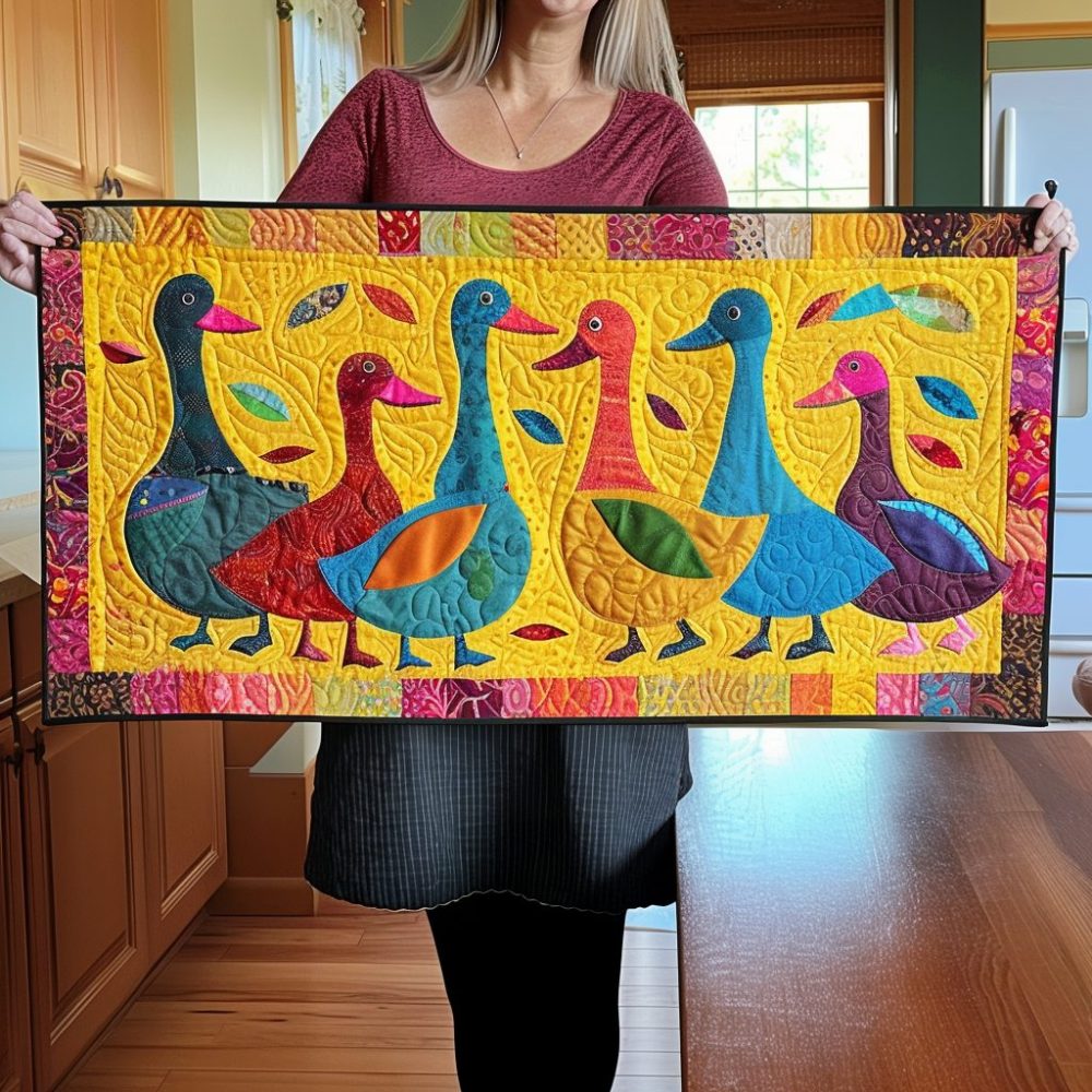 Vibrant Duck Quilted Table Runner