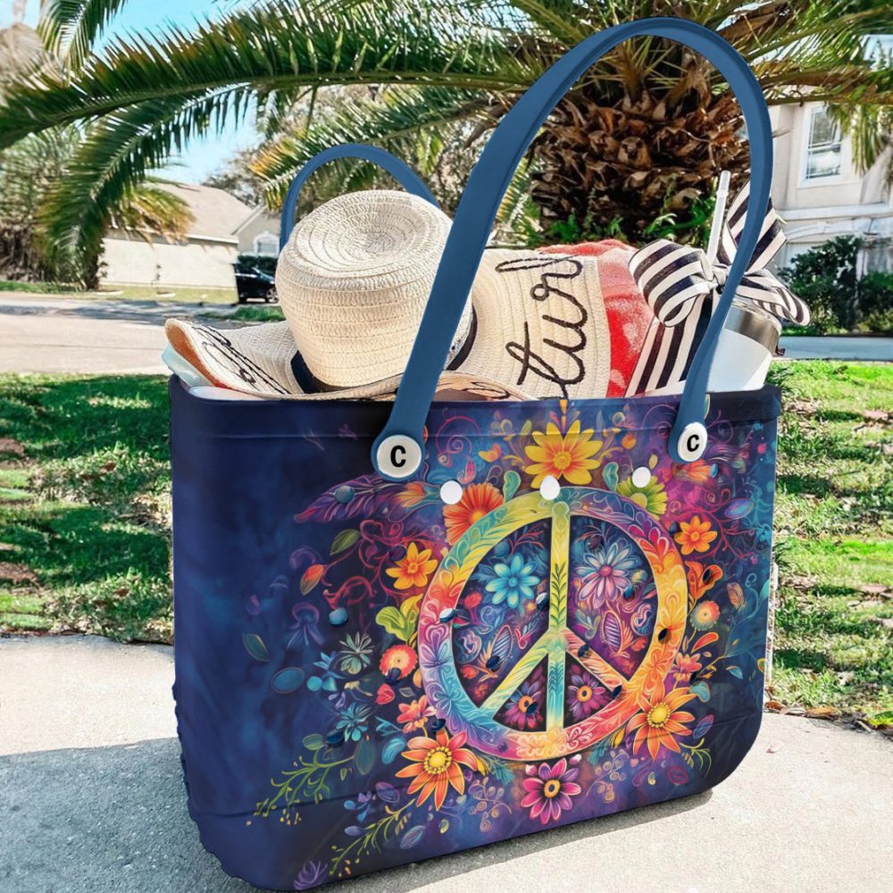 Be the first to review “Vibrant Floral Peace Sign Tote Bag – Eco-Friendly, Stylish & Spacious”