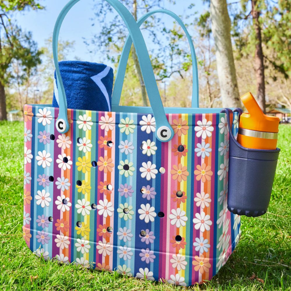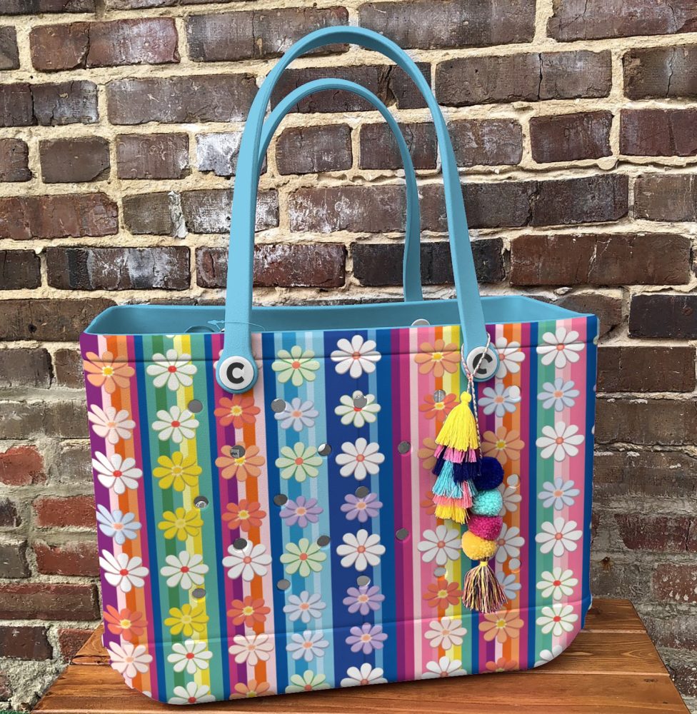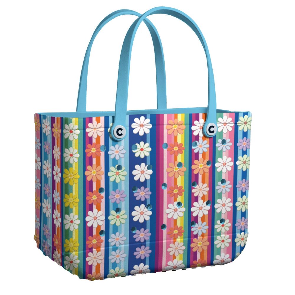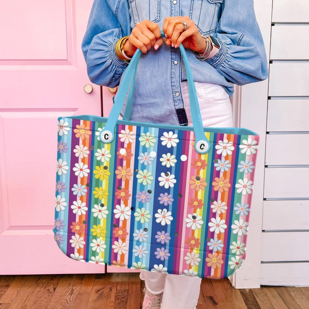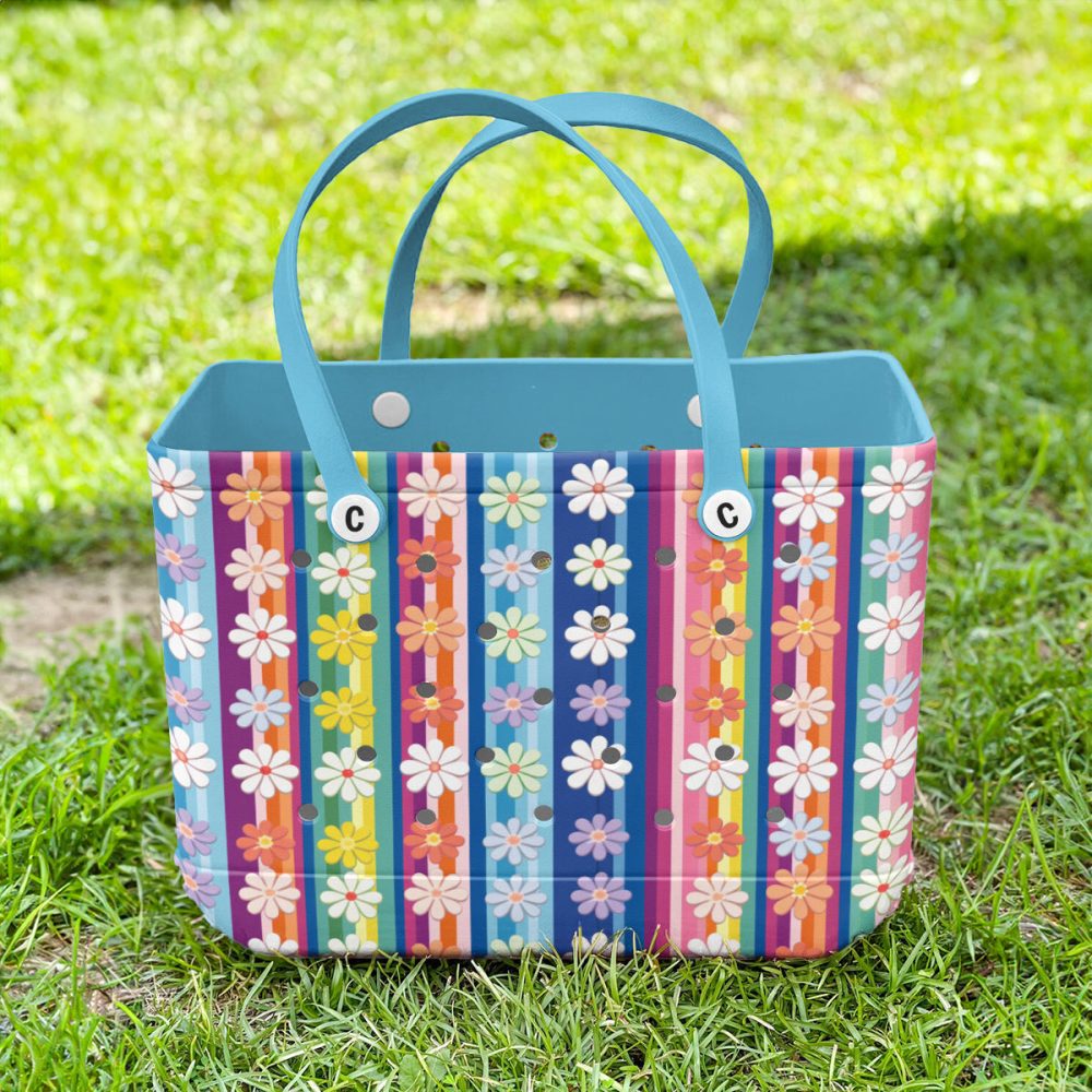 Be the first to review “Vibrant Floral Tote Bag – Colorful Striped Beach & Shopping Essential”
