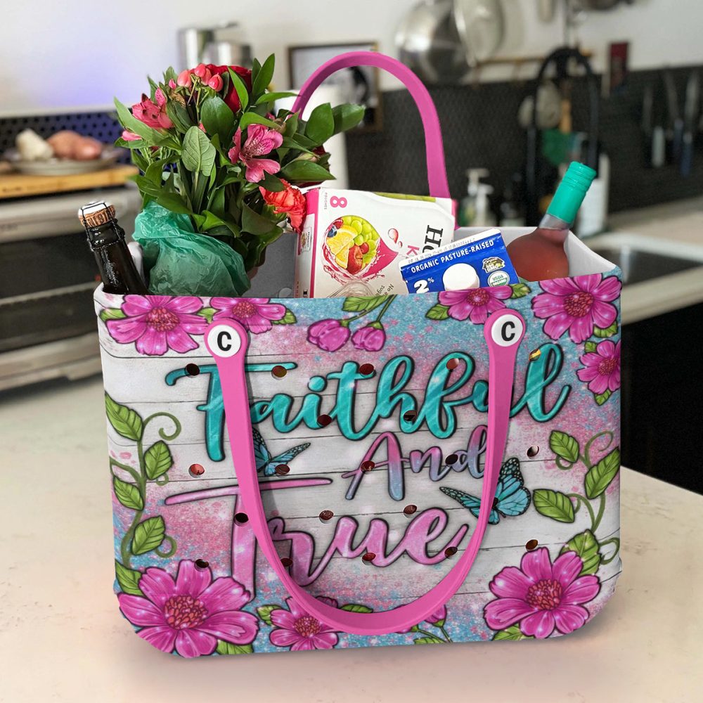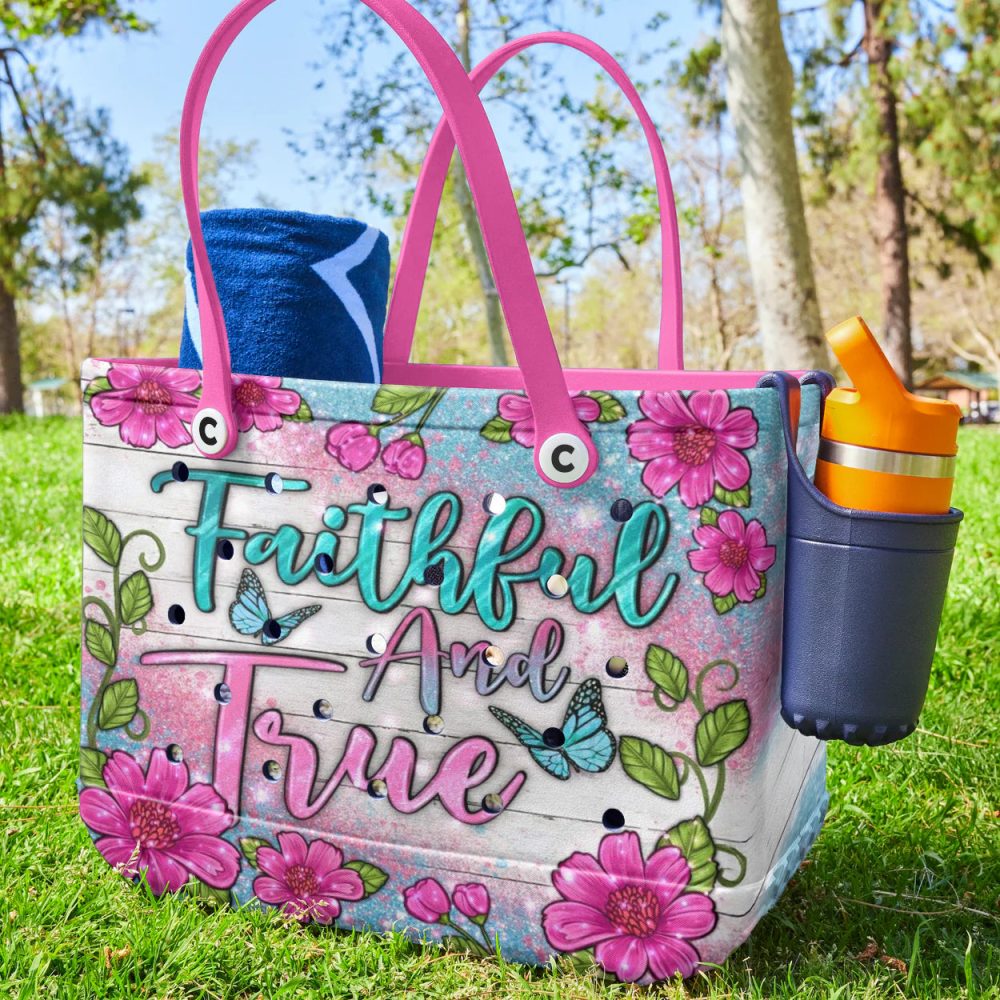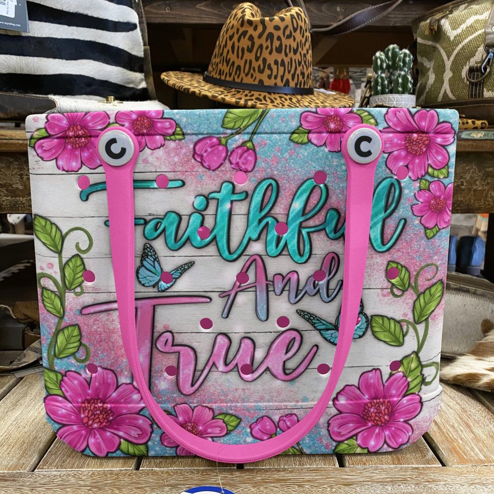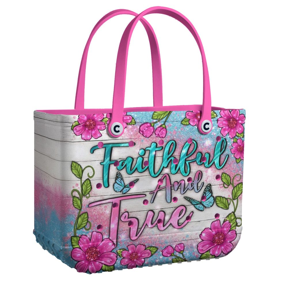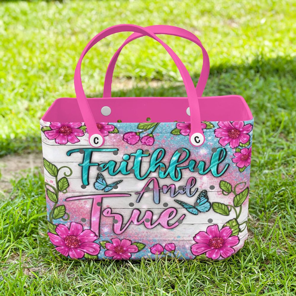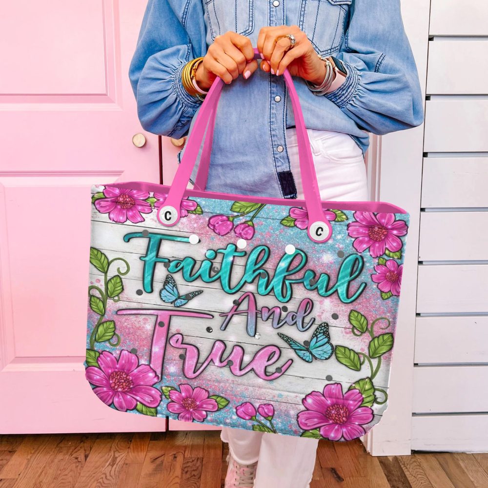 Be the first to review “Vibrant Floral Tote Bag – ‘Faithful And True’ Design, Pink Handles, Perfect For Everyday Use”