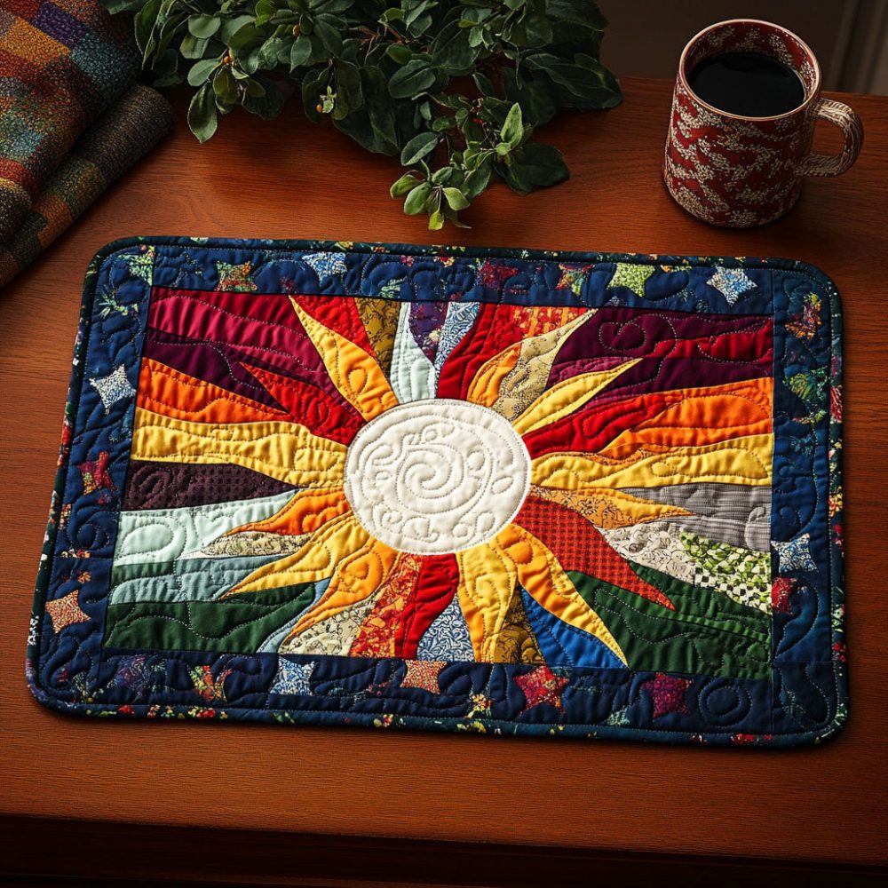 vibrant placemat,colorful placemat,quilted patchwork mat,cotton table mat,modern dining decor,bright kitchen placemat,giftable placemat,machine washable