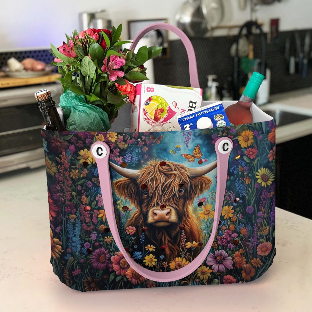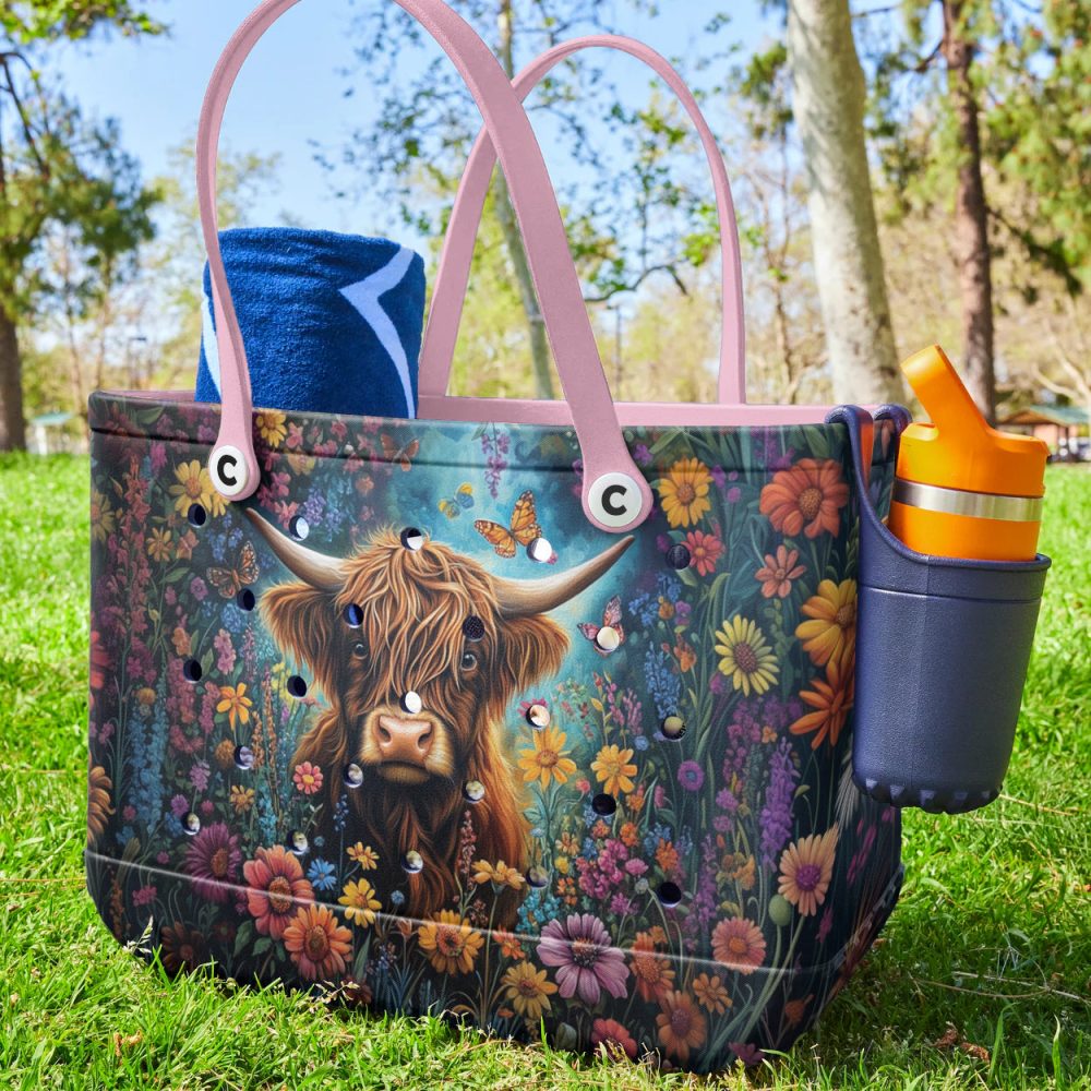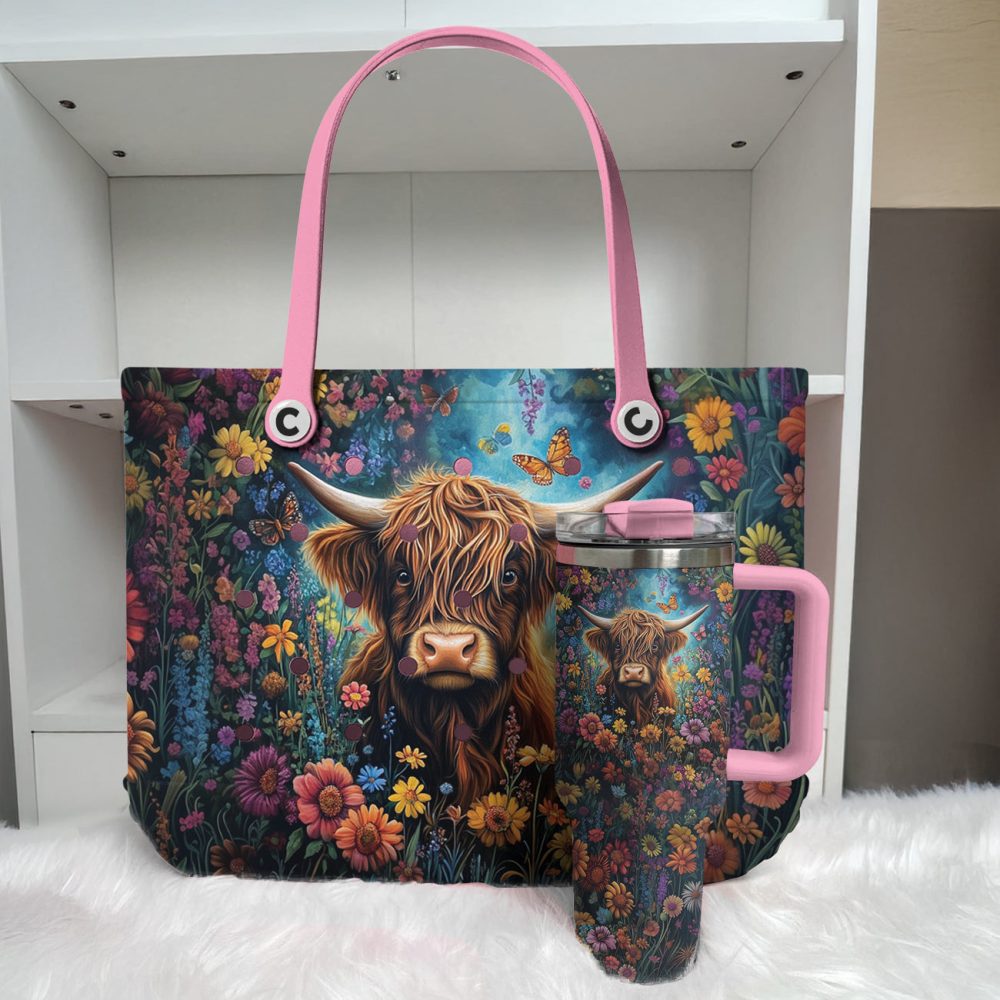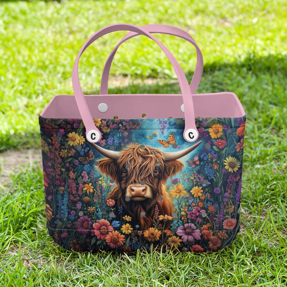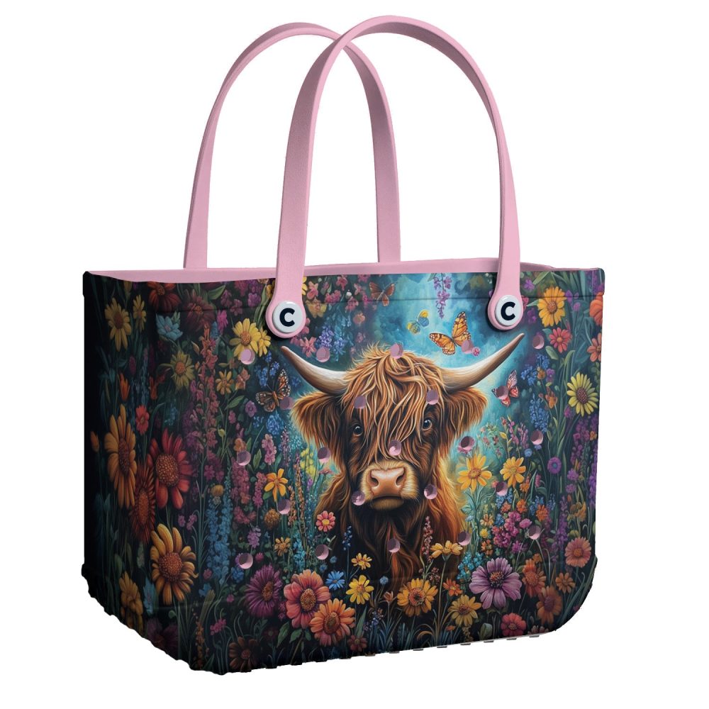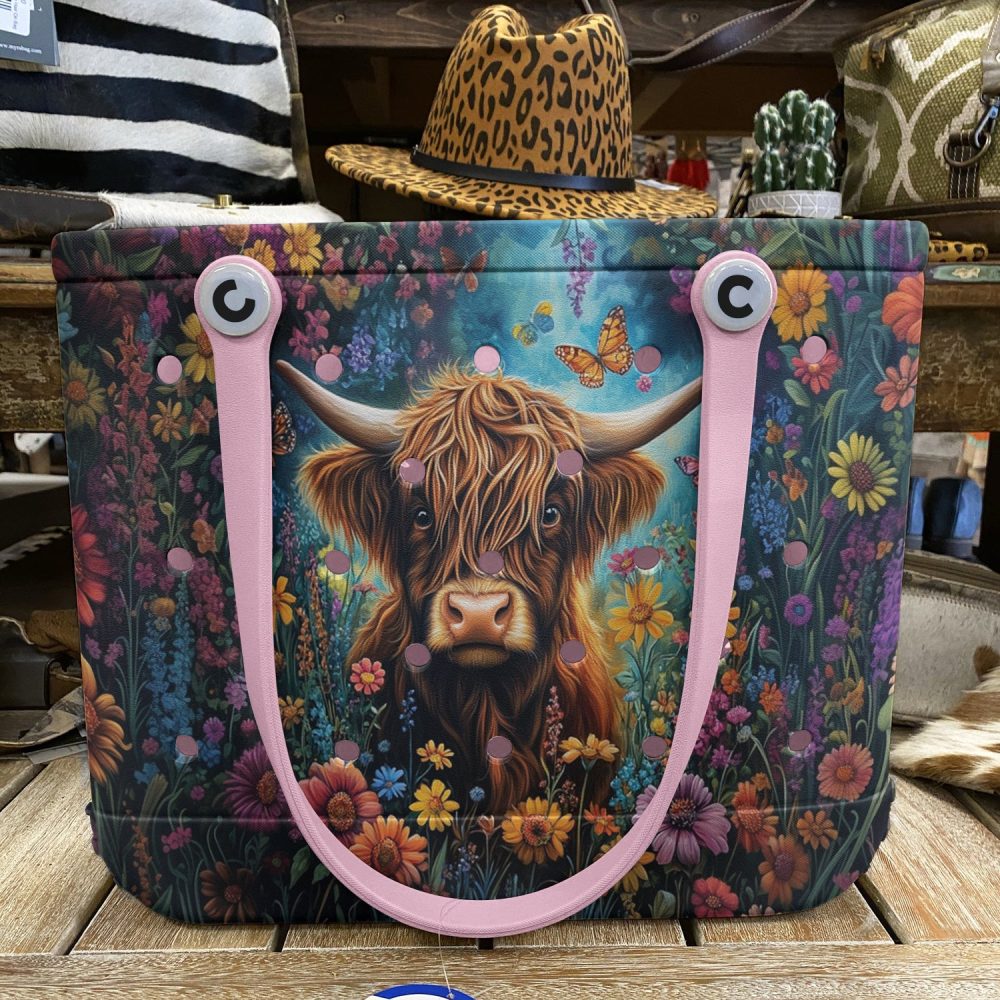 Be the first to review “Vibrant Highland Cow Tote Bag – Floral Print With Pink Handles – Stylish & Spacious For Everyday Use”