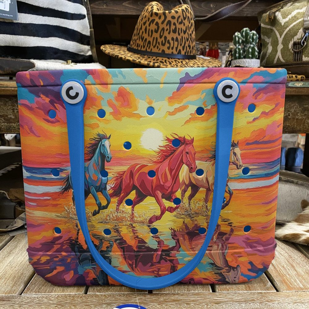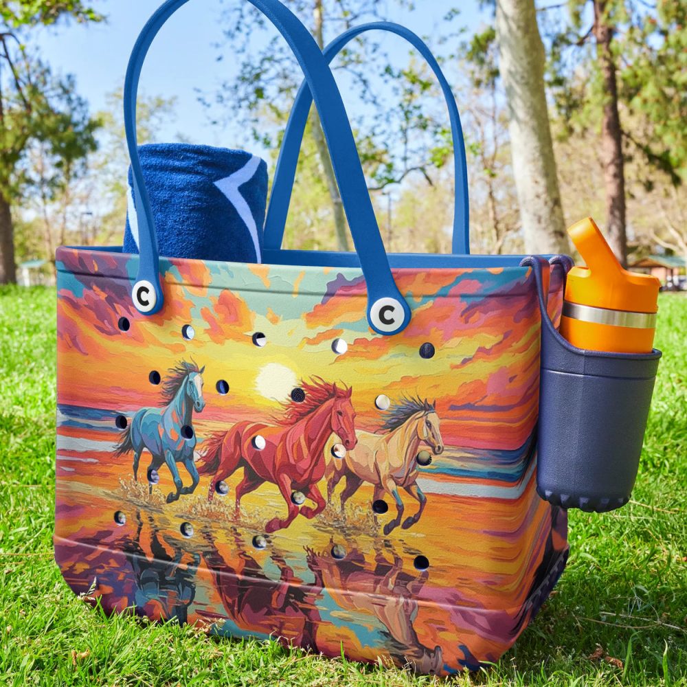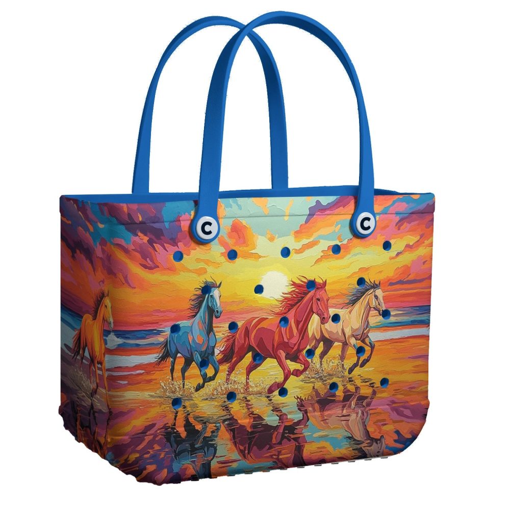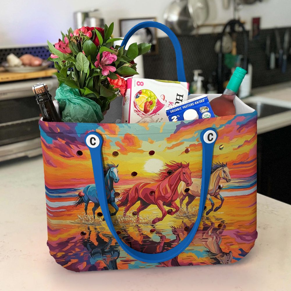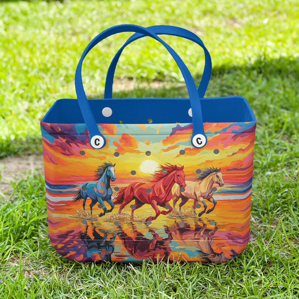 Be the first to review “Vibrant Horse Sunset Tote Bag – Colorful Beach & Travel Accessory With Artistic Design”