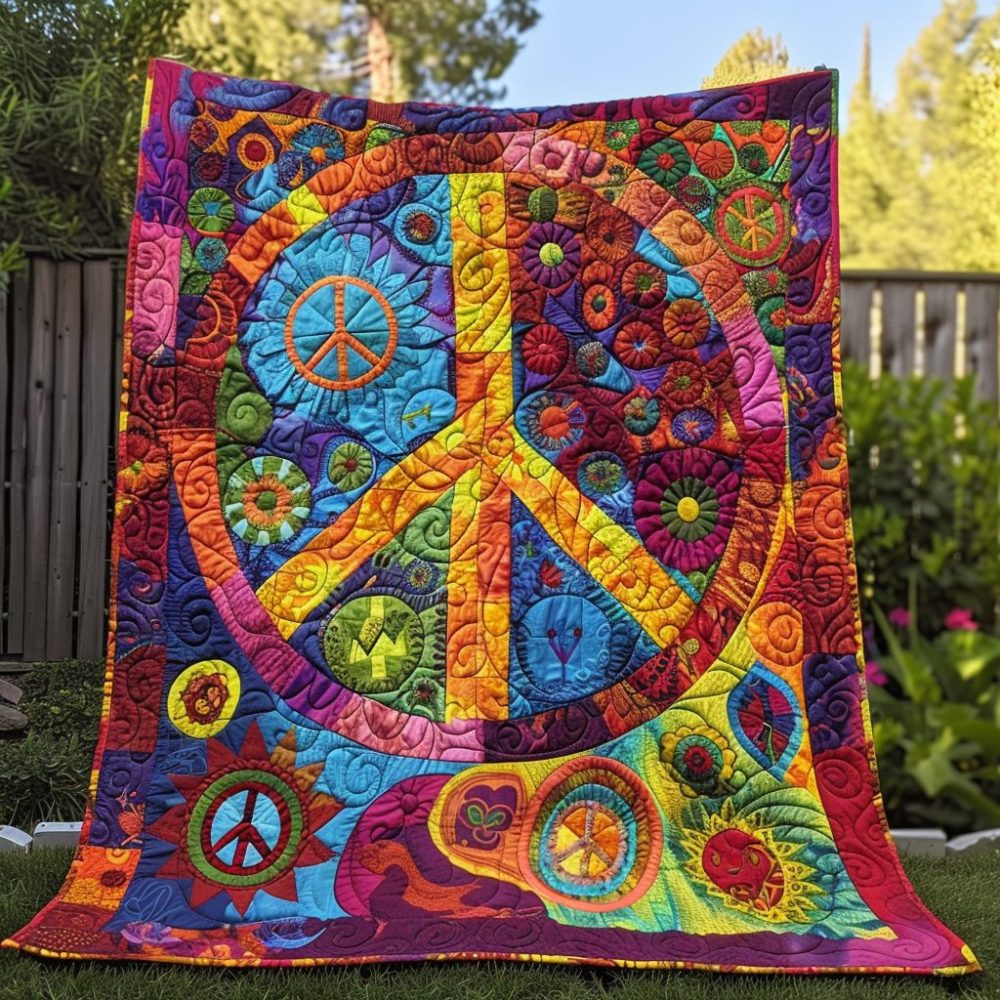 Vibrant Peace Sign Quilted Blanket