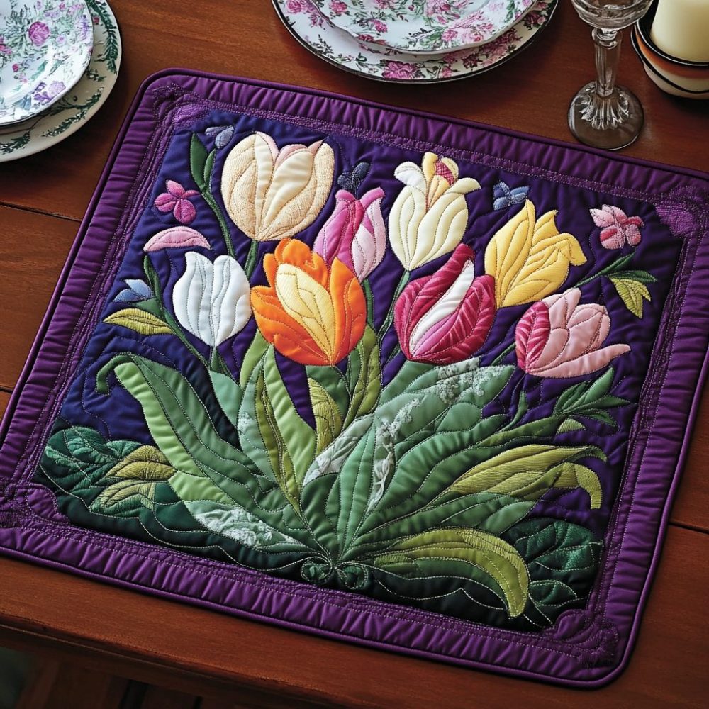 vibrant petals placemat, floral quilted placemat, colorful table mat, washable placemat, non-slip, fade-resistant print, spring decor