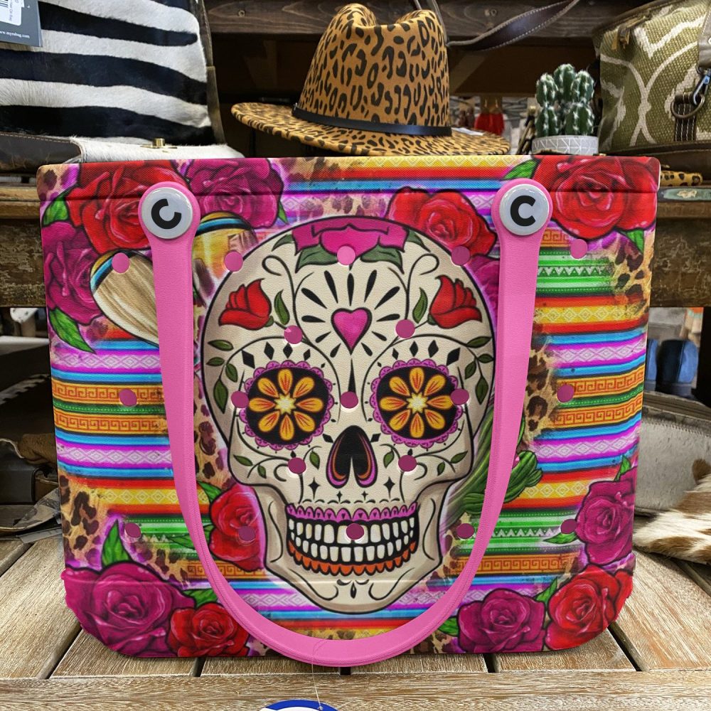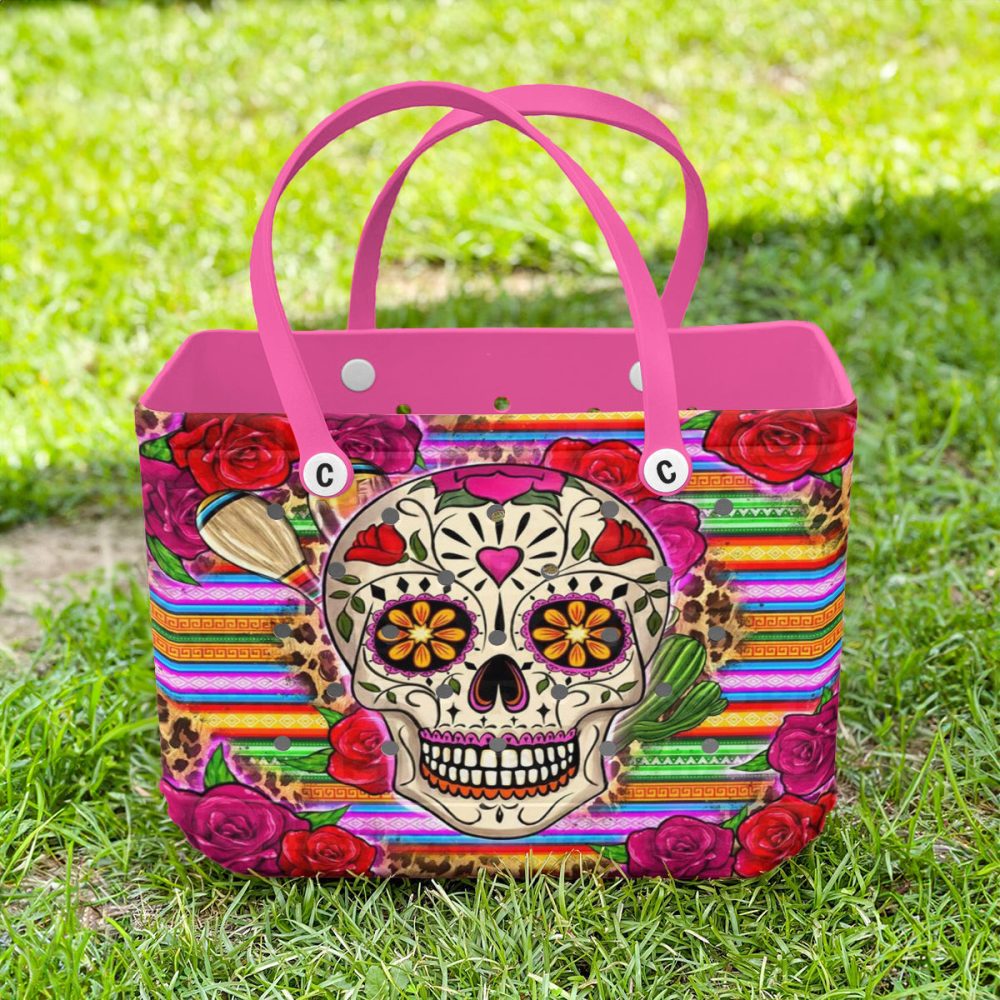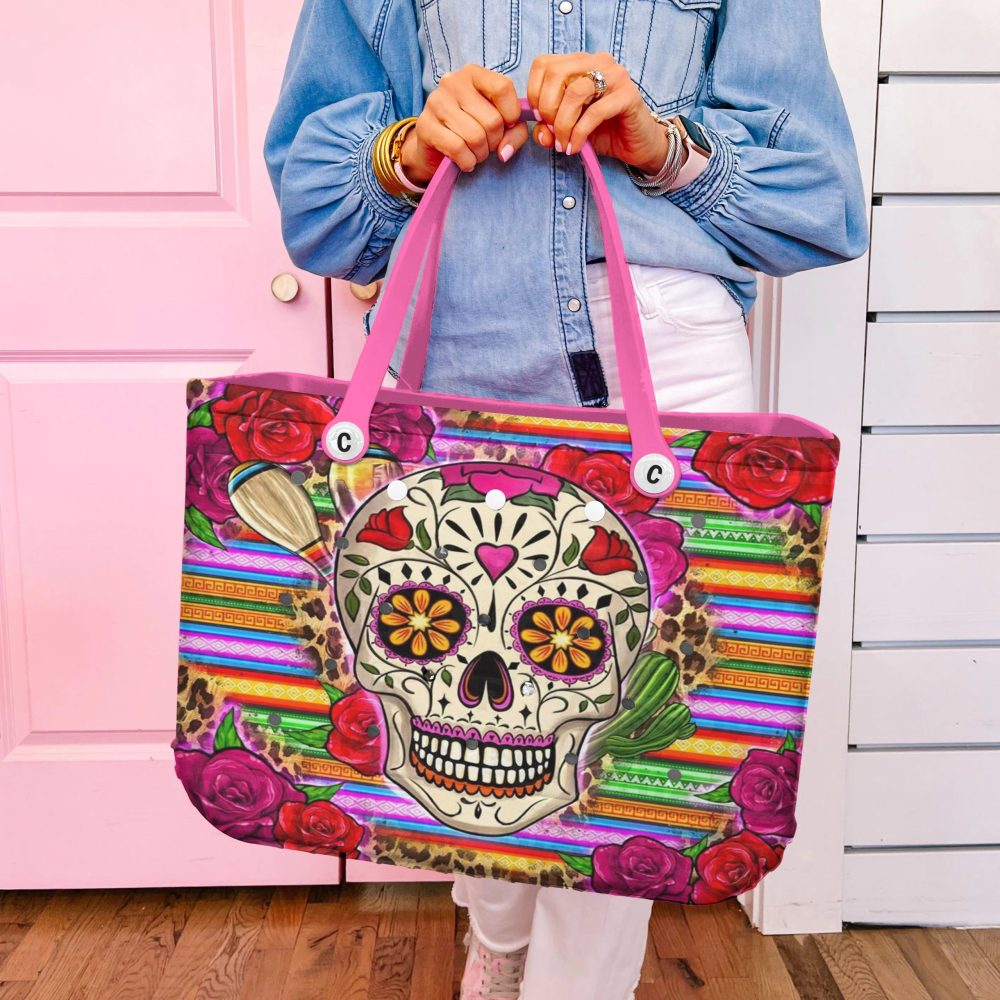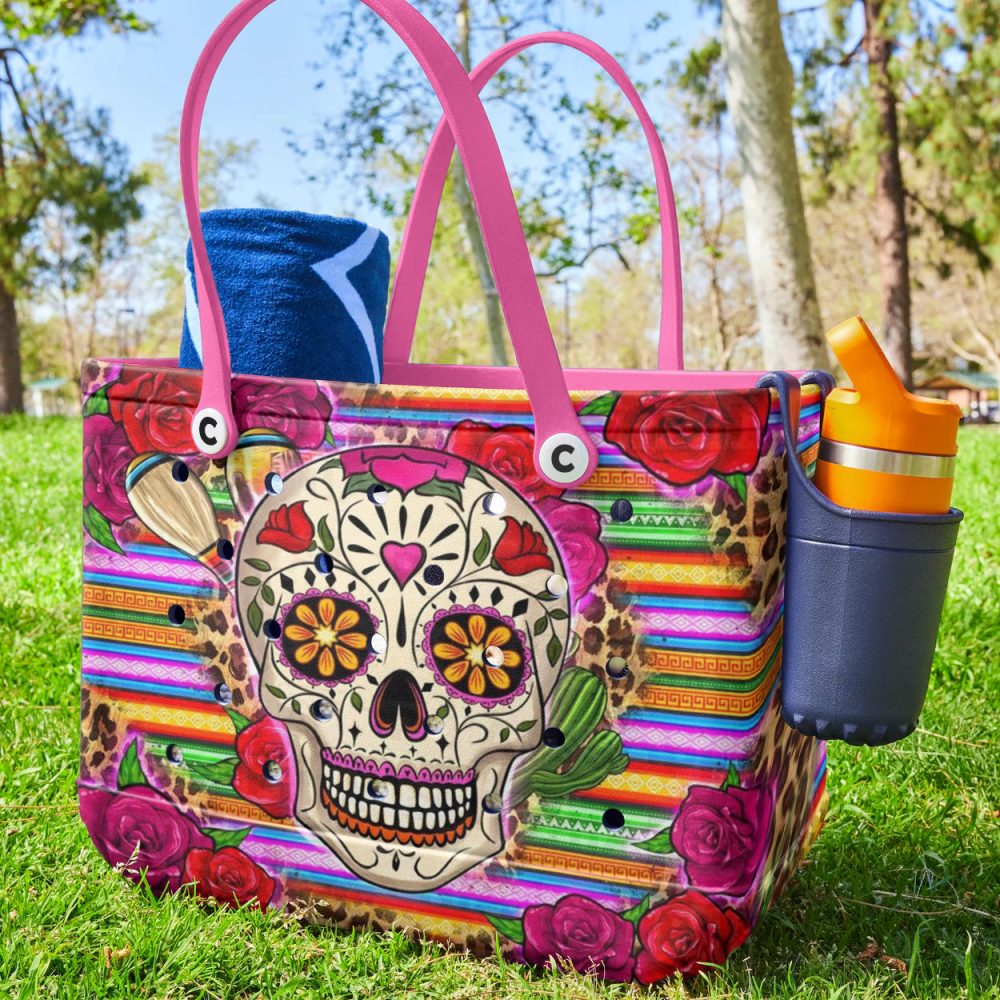Be the first to review “Vibrant Sugar Skull Tote Bag – Colorful Day Of The Dead Design With Roses & Stripes – Perfect For Beach Or Shopping”