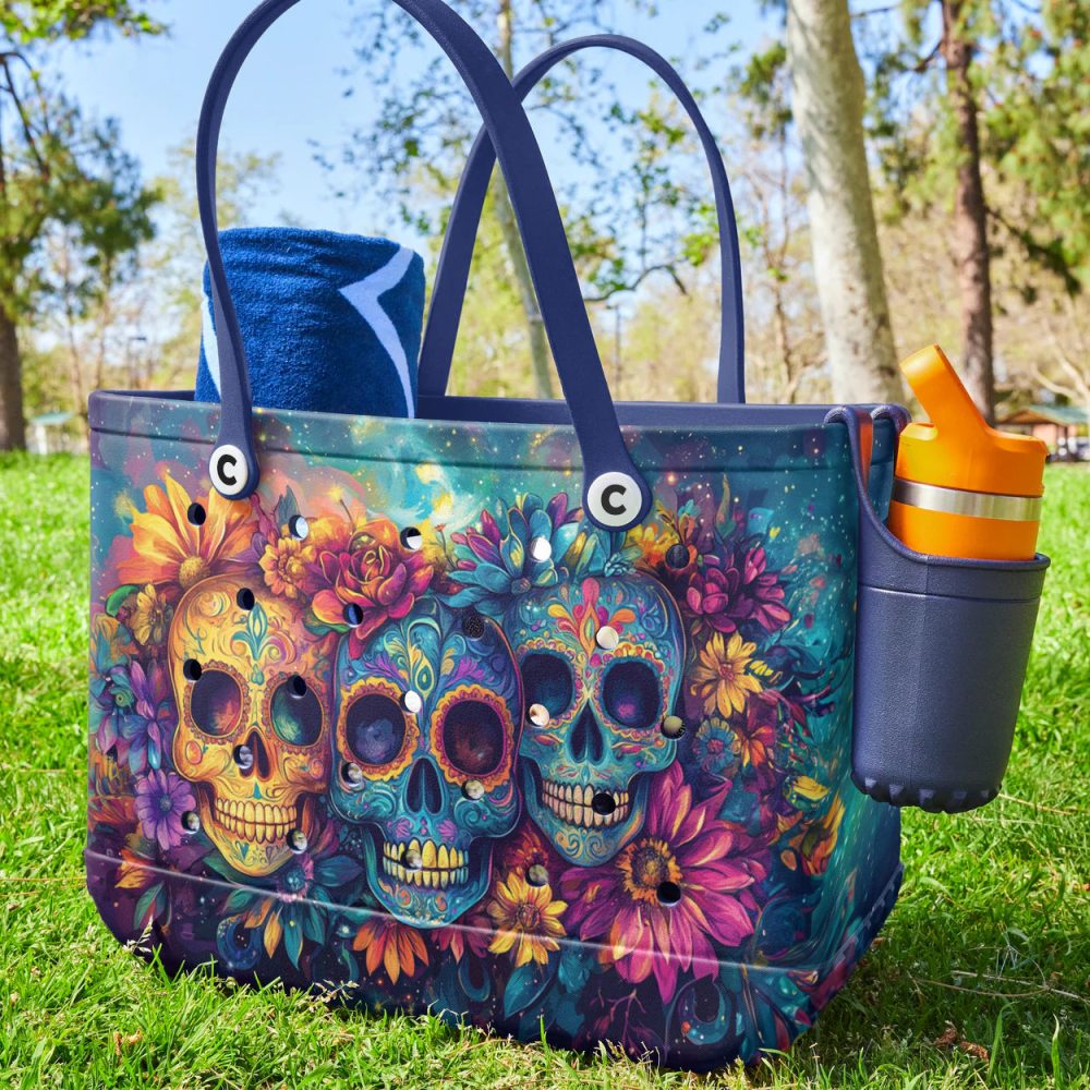 Be the first to review “Vibrant Sugar Skull Tote Bag – Colorful Floral Design, Perfect For Day Of The Dead Celebrations!”