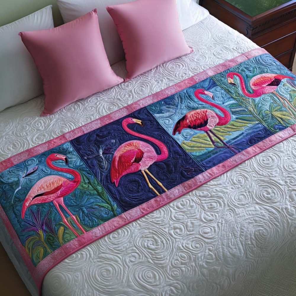 Vibrant Tropical Floral Quilted Bed Runner — Bright Botanical Bed Scarf For Queen & King Beds, Bold Accent Throw